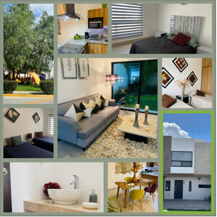 Bella casa a due piani, due camere da letto al piano superiore e una al piano terra, garage con cancello, semi coperto per due auto, arredamento rustico, accogliente, con una bella vista sul parco lineare, allarme con sensore di movimento. Vicino a due viali che comunicano con il centro della città e con le autostrade per altre città come Guanajuato, Aguascalientes, Lagos de Moreno, ecc.
