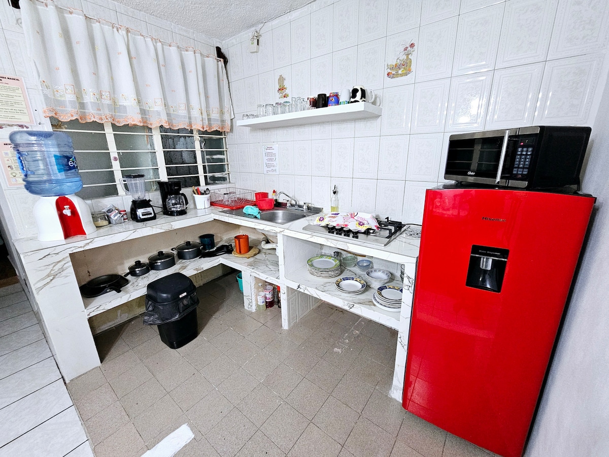 Goditi il calore di questo alloggio tranquillo e centrale. Abbiamo una camera da letto con letto matrimoniale, aria condizionata e TV, soggiorno con cucina attrezzata (frigorifero e fornelli) e parcheggio per un'auto di medie dimensioni. Ci troviamo a 5 minuti a piedi dalle attrazioni turistiche del centro. (paseo colón,paseo del Rio,alameda, funivia) Soggiorna in una delle zone più tranquille e sicure di Orizaba dove trascorrerai un piacevole pomeriggio con la splendida vista sulla funivia.