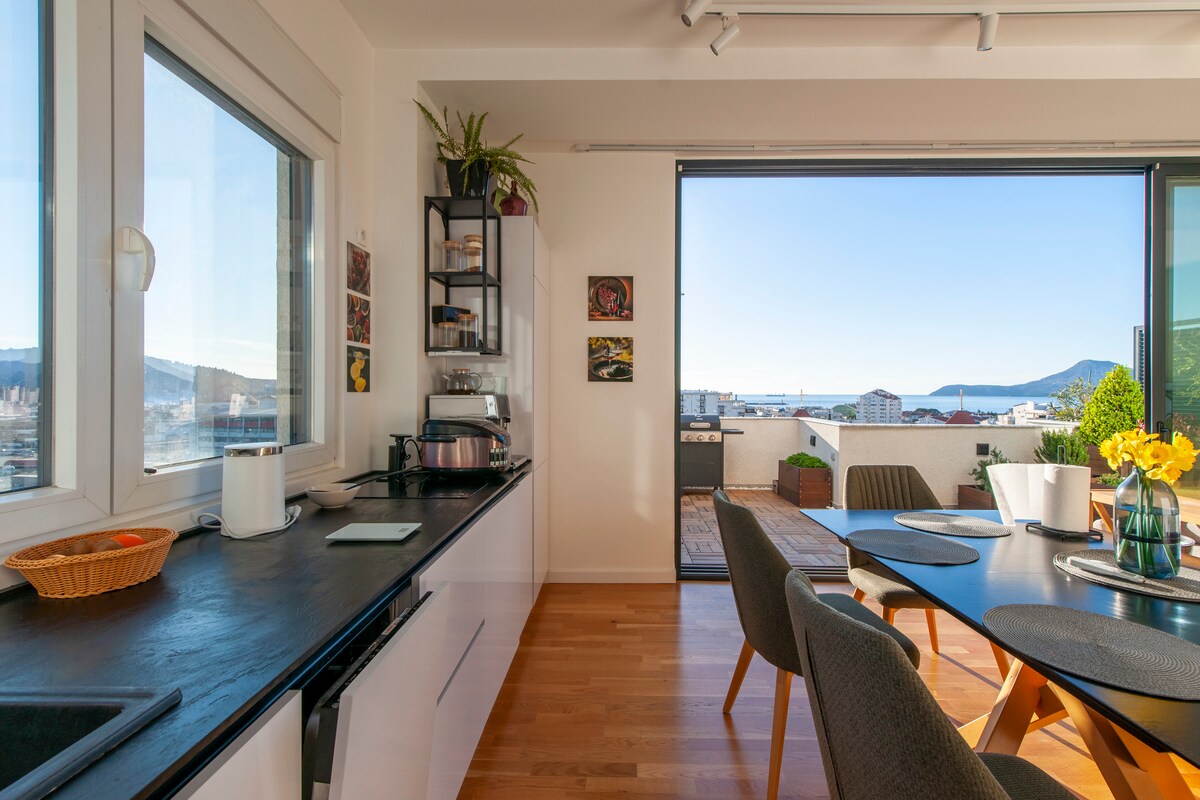 Ciao! Benvenuti nel mio appartamento appena ristrutturato situato in zona centrale del Bar, a 10 minuti a piedi dalla spiaggia. Nelle vicinanze ci sono anche molti negozi, e c'è la stazione degli autobus proprio di fronte al palazzo. L'appartamento si trova al 4 ° piano con vista mozzafiato e c'è un ascensore :) Per qualsiasi domanda, non esitare a contattarmi!