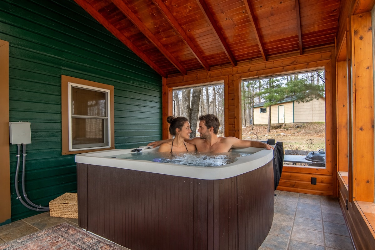 La tua fuga privata al lago per famiglie! Completamente rinnovato, tranquillo e rilassante, ma moderno. Rilassati e goditi il lago dalla terrazza o dalle aree picnic. Lancia una lenza dal molo o sali sui kayak o sul mini pontone in dotazione! Goditi un bagno caldo nella nuova vasca idromassaggio e nella doccia doppia mozzafiato, poi accomodati a guardare un film davanti ai caminetti elettrici! Griglia per barbecue e piano cottura inclusi. Ampio loft con 2 letti matrimoniali e camera da letto principale con letto king-size. Perfetto per creare ricordi in famiglia inestimabili sul lago. Internet in fibra incluso!