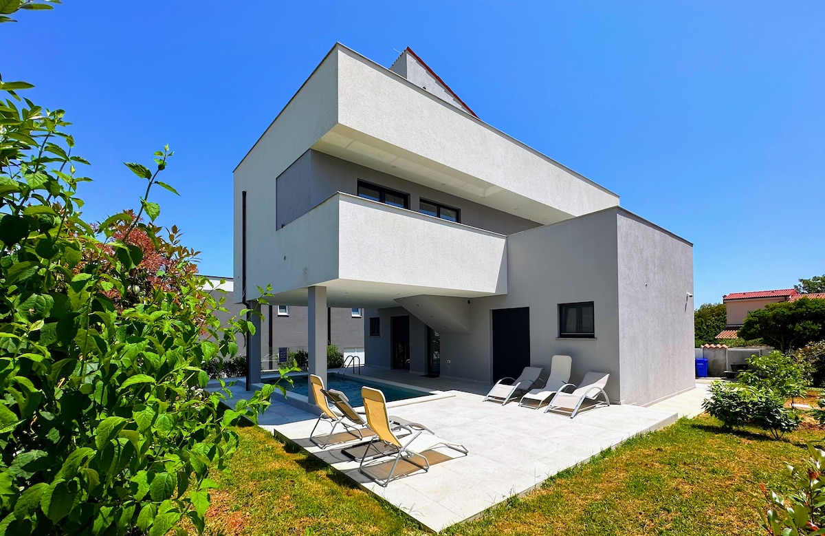 Villa Fuskulina è una lussuosa villa progettata da un architetto vicino a Parenzo, circondata da uliveti e vigneti con vista sull'Adriatico. Con 4 camere da letto, piscina privata, vasca idromassaggio, cucina all'aperto e ampie terrazze, offre comfort e privacy tutto l'anno. Completamente autosufficiente dal punto di vista energetico, è il rifugio perfetto per famiglie, amici o soggiorni di lavoro nella bellissima Istria.