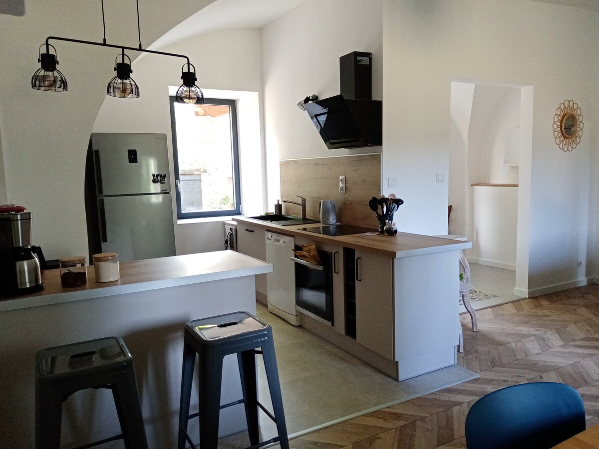 Antico edificio agricolo, questa casa di 75 m2 è stata completamente ristrutturata dopo 3 anni di lavori (fine lavori luglio 2021) Questa ristrutturazione è stata fatta con molta cura, per un servizio di alta qualità. In ognuna delle stanze la vista è mozzafiato, affascinante o ancora aerea… È un vero e proprio nido d’aquila che domina il villaggio… ma i piedi nell'acqua… Il fiume Roanne e le sue piscine naturali sono a 5 minuti a piedi.