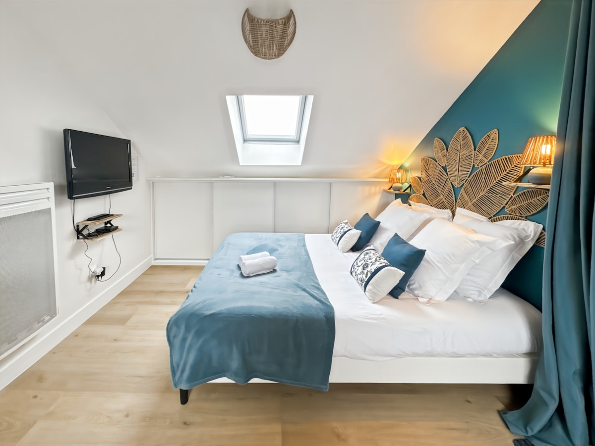 Alloggio di alta gamma con Balneoterapia, Sauna, divano tantra, porta segreta rivela una spa privata con sauna & tavolo da massaggio. Concedetevi una parentesi di relax in questo splendido alloggio ispirato a Bali di 66 m² per due persone. Tutti i comfort: • Suite con letto king size (180x200), biancheria da letto di alta qualità • Balneoterapia doppia con cielo stellato • Stanza segreta con tavolo da massaggio e sauna • Soggiorno con camino a vapore e TV connessa • Bagno con doppia doccia • Poltrona tantra