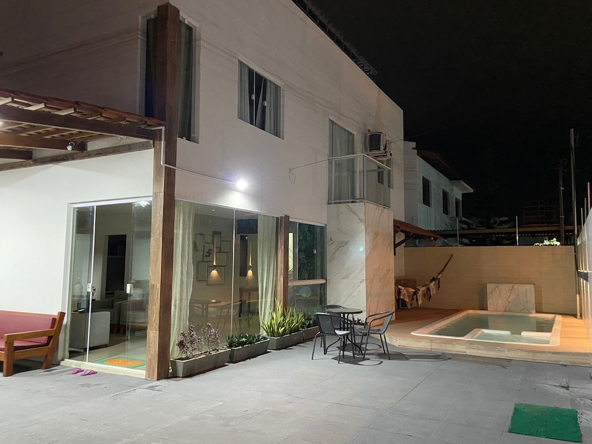 Venite a rilassarvi con tutta la famiglia. La nostra casa è un Triplex che si trova a 450 metri dal mare della bellissima Praia do Poço e dalle uscite per l'Isola di Areia Vermelha, ed è anche a pochi minuti dal bellissimo tramonto di Praia do Jacaré. Dispone di Solarium, due suite complete con balcone, aria condizionata, TV, letto matrimoniale, doccia elettrica, dispone inoltre di una cucina completa, Area Gourmet con piscina privata con idromassaggio, cascata e cromoterapia, grande barbecue, amache, tavolo e sedie.
