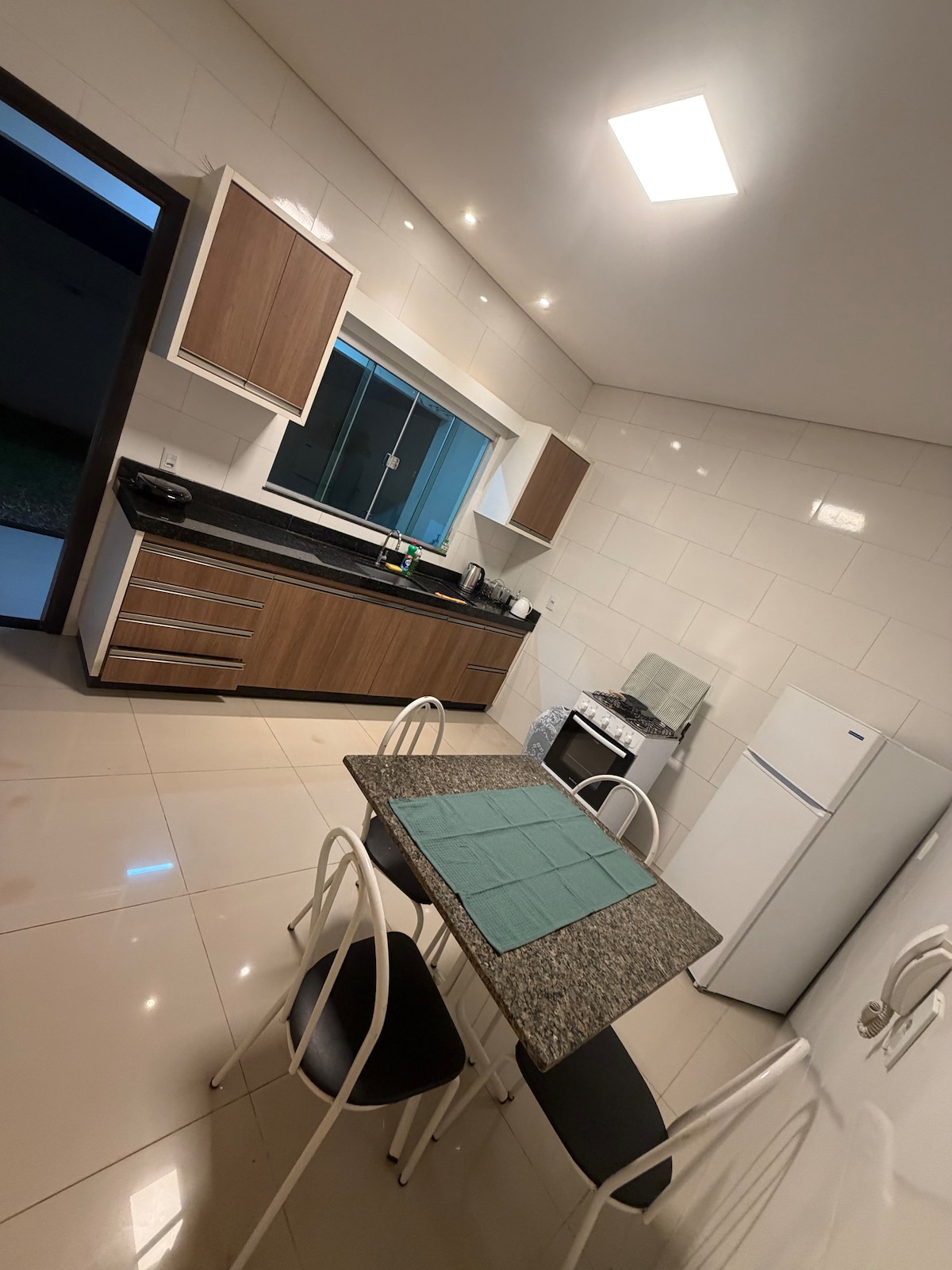 Espaço aconchegante, com tudo que precisa para relaxar ou trabalhar. Projetado para 4 pessoas, conta com um quarto com cama de casal com ar condicionado, mais um sofá cama na sala que acomoda 2 pessoas, enxoval completo, uma sala ampla, mesa para refeições, uma cozinha completa, churrasqueira, garagem para um veículo, máquina de lavar roupa. Próximo a Farmácia, Supermercado, Padaria, Restaurante, Hospital, Centro de Convenções, Horto. Relaxe com toda a família nesta acomodação tranquila.