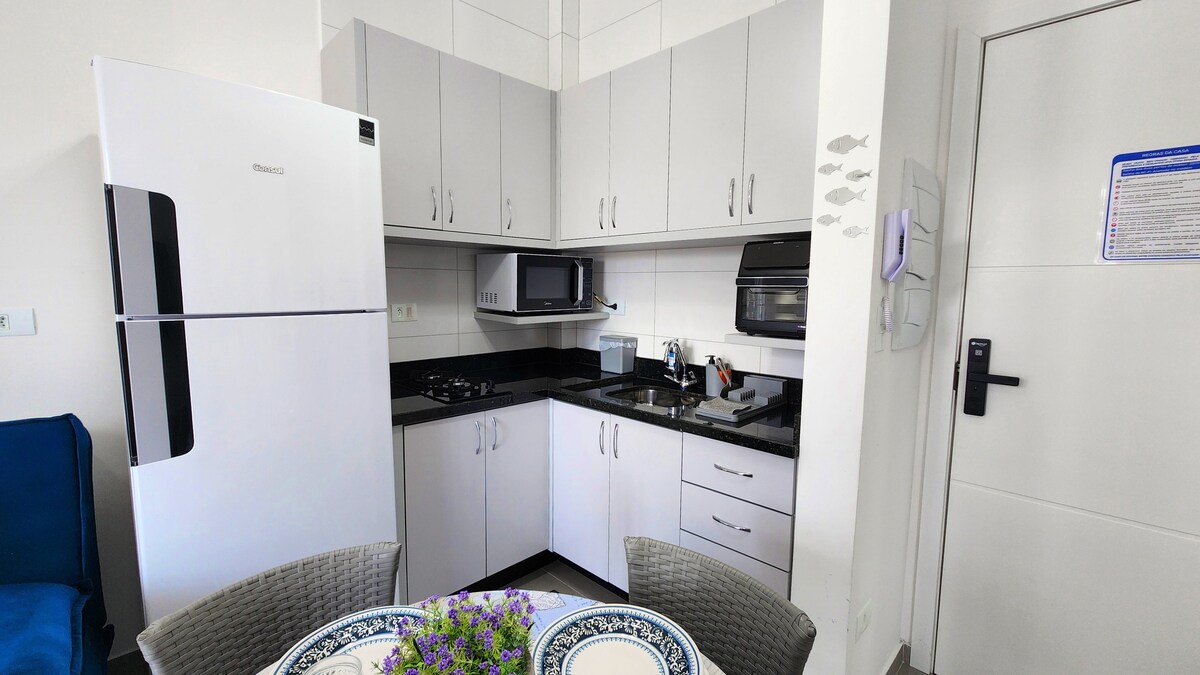 Appartamento compatto con 24 m² di area privata, con vista dal balcone sul mare, completamente arredato, con ventilatori a soffitto, smart tv, internet, cucina e utensili, con un letto matrimoniale e un divano letto, (non forniamo asciugamani e ombrelloni) parco giochi per bambini, circuito TVCC, ascensore, molto ben posizionato, può ospitare fino a 3 persone, si trova nel comune di Pontal do Paraná, spiaggia balneare di leste, vicino a bar, ristoranti, negozi in genere...