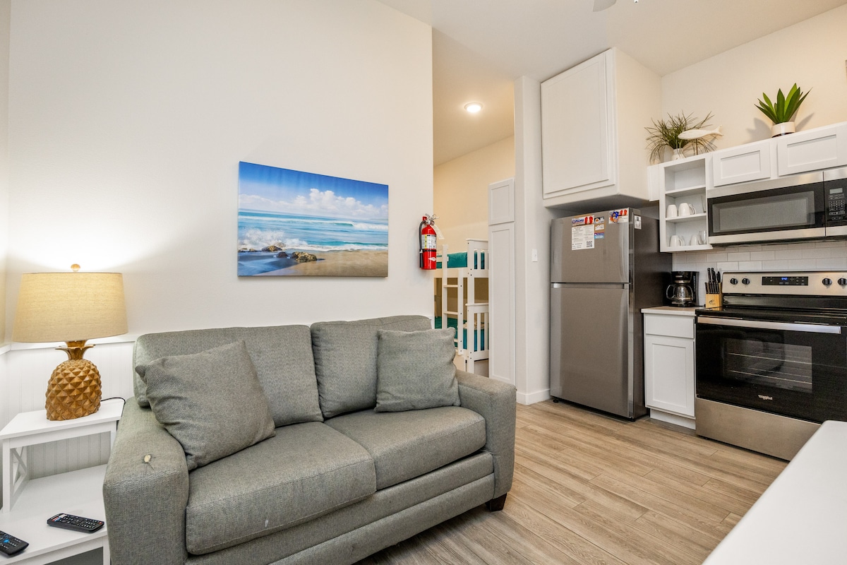 Goditi una vacanza serena in questo monolocale al primo piano recentemente ristrutturato a North Padre Island, a soli 5 minuti a piedi dalla spiaggia. Questo accogliente cottage presenta un design intramontabile e raffinato, tra cui un letto king-size e un divano letto queen-size che possono ospitare fino a 4 persone. Godrai inoltre di una cucina completa, di un bagno, di una zona pranzo e di un soggiorno con TV 4K. Ci sono molti servizi in comune, tra cui piscina, vasca idromassaggio, sauna, palestra, barbecue e altro ancora. Goditi oggi stesso una serena vacanza al mare!