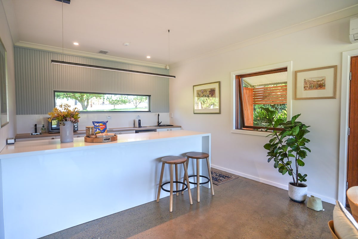 Ti diamo il benvenuto a The Nook, il tuo accogliente rifugio immerso nelle tranquille Adelaide Hills. Questo moderno monolocale è il rifugio perfetto per chi cerca tranquillità e comfort in mezzo alla natura. Con il suo design elegante e i servizi curati, The Nook offre una miscela perfetta di vita contemporanea e fascino rustico. Che tu stia sorseggiando vino nel patio privato, esplorando i vicini vigneti o semplicemente rilassandoti vicino al caminetto, vieni a scoprire la bellezza delle Adelaide Hills nella nostra oasi