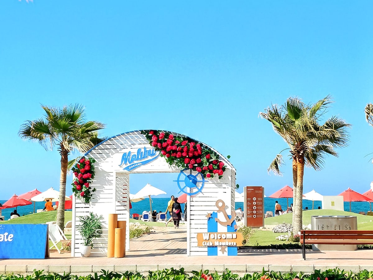 Un villaggio turistico affacciato sul Mediterraneo con servizi di base, negozi e caffè Appartamento con 2 camere e salotto al secondo piano Piscina 👨👩👧 للعائلات فقطcondivisa. giardino privato