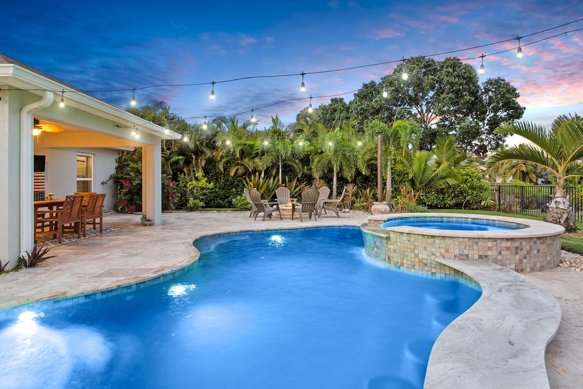 Benvenuto sulla costa del tesoro e nella tua casa lontano da casa. Goditi la fauna selvatica del canale in questo quartiere tranquillo che si affaccia su un grande canale. Anche se nuoterai in una bella piscina schermata, preparati a prendere una sedia a sdraio e a raggiungere l'oceano a soli 13 km di distanza. Poiché sei vicino a tutto, puoi cenare, fare shopping, pescare, vedere un film o fare una passeggiata nei vicini giardini botanici. Connettiti al wifi super veloce per lavorare su una delle due scrivanie o recuperare le e-mail.