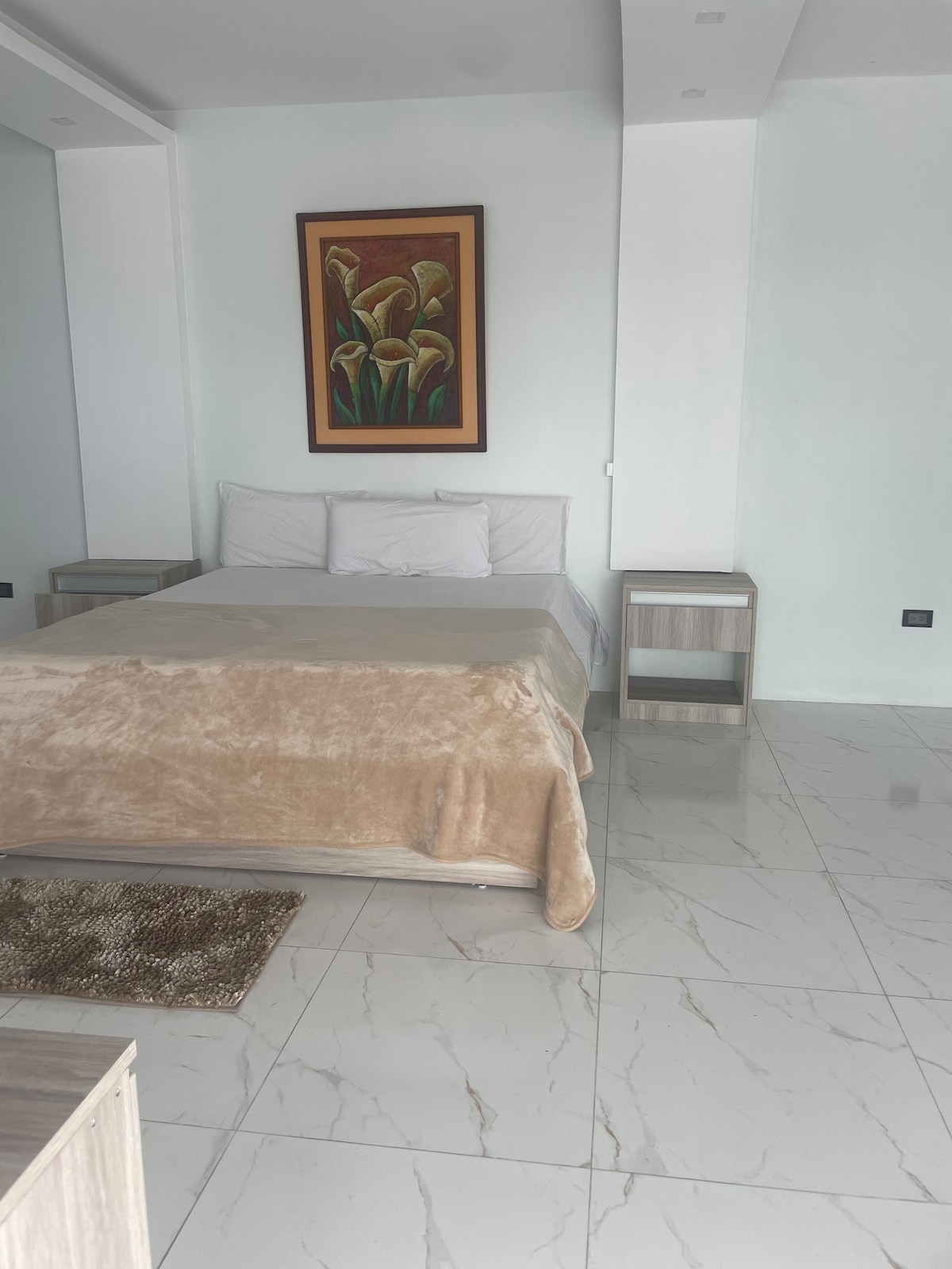 Questo appartamento-suite con balcone privato è situato in posizione strategica nel cuore di Portoviejo, VICINO A TUTTO! Offre uno spazio completamente PRIVATO PER TE ed è molto sicuro al primo piano dell'edificio. Puoi soggiornare nel centro di Portoviejo, a pochi metri dal centro commerciale, vicino a parchi, e andare ovunque in città in pochi minuti. Oltre a riposare comodamente, avrai anche un tavolo da lavoro con internet veloce.