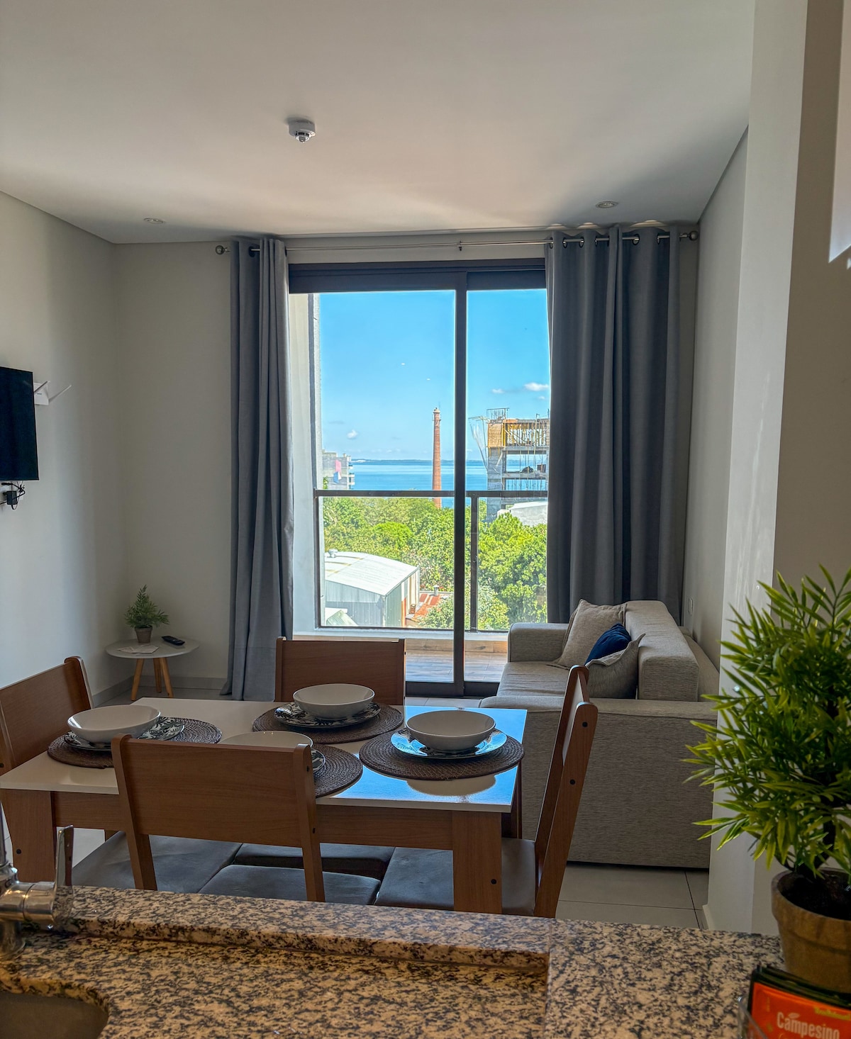 Appartamento con balcone vista fiume e ottima posizione!📍. Raggiungi a piedi la Costanera, Playa San Jose🏖️, ristoranti🍴 e Shopping Costanera🛍️. Sala principale con letto matrimoniale🛏️, salotto con divano letto(2,10 x 0,95 x 0,92)🛋️, sala da pranzo, cucina integrata e bagno moderno 🚿 Servizio di sicurezza 🔒 e lavanderia 24 ore su 24 all'interno dell'edificio per tua comodità. Aires si divide nella stanza e nella sala da pranzo.
