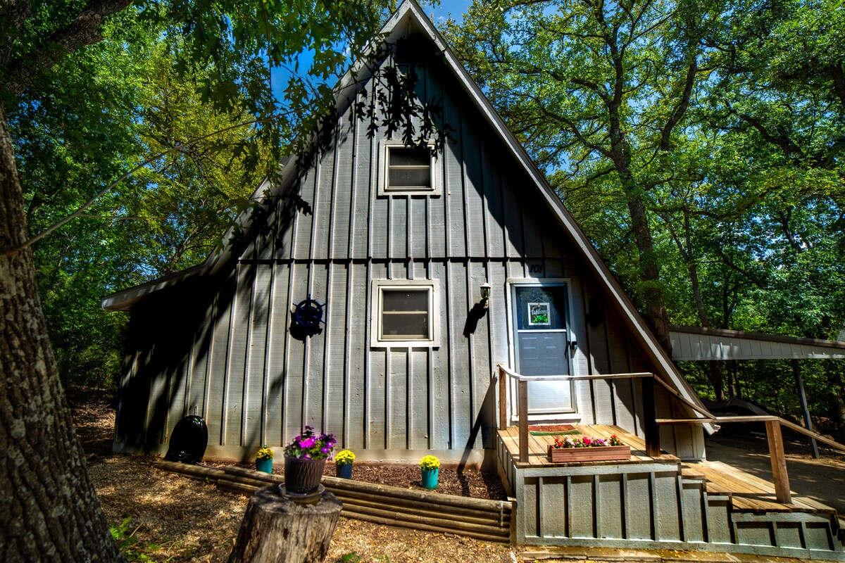 Rifugiati nella nostra accogliente baita A-Frame, un rifugio tranquillo e immerso nel verde, perfetto per la tua prossima vacanza. Abbiamo progettato la baita per un facile relax, dalle sedie a dondolo sul ponte al focolare pronto per le chiacchierate serali. La cucina è completamente attrezzata e la griglia è pronta per l'uso. Ti piacerà il comodo letto king-size e la possibilità di avvistare gufi dalla seconda camera da letto! A 1-1,5 ore di auto da Dallas e a pochi minuti dal lago Texoma, Highport Marina e Tanglewood Resort: è il luogo perfetto per rilassarsi e ricaricarsi.