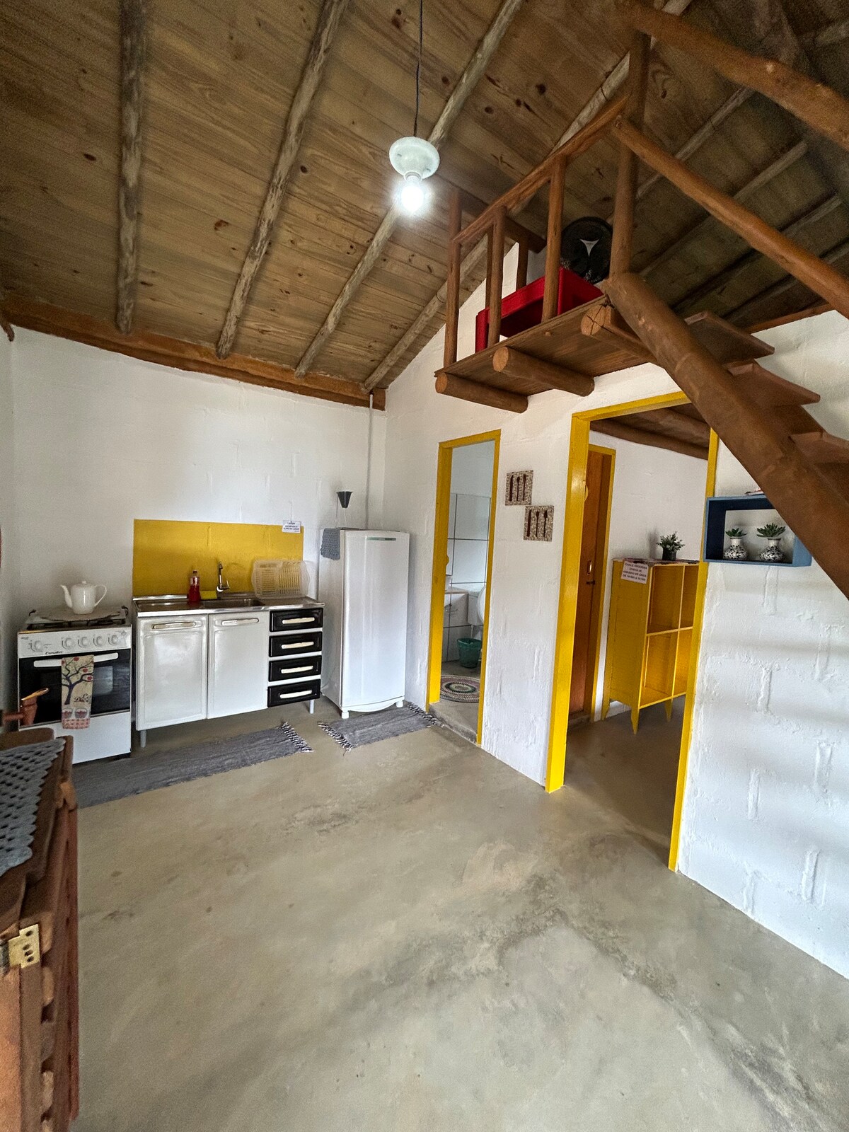 WiFi Starlink, spazi verdi e pace! Appartamento su pista, a 2 minuti dalla spiaggia! Casa Amarela (10 persone) - Cucina attrezzata - 2 suite (1 matrimoniale e 1 doppia) con aria condizionata e balcone - Mezzanino aperto 1,30 alt (2 coppie + 1 solt) - Camera con 1 letto singolo STRUTTURA PER MANCANZA DI LUCE e/o ACQUA: - Pannello solare + batteria per l'illuminazione domestica, wifi Starlink e presa per ricaricare cellulari e notebook - Doccia elettrica + gas (per frequenti interruzioni di corrente) 2 serbatoi d'acqua (4.000 litri in totale)