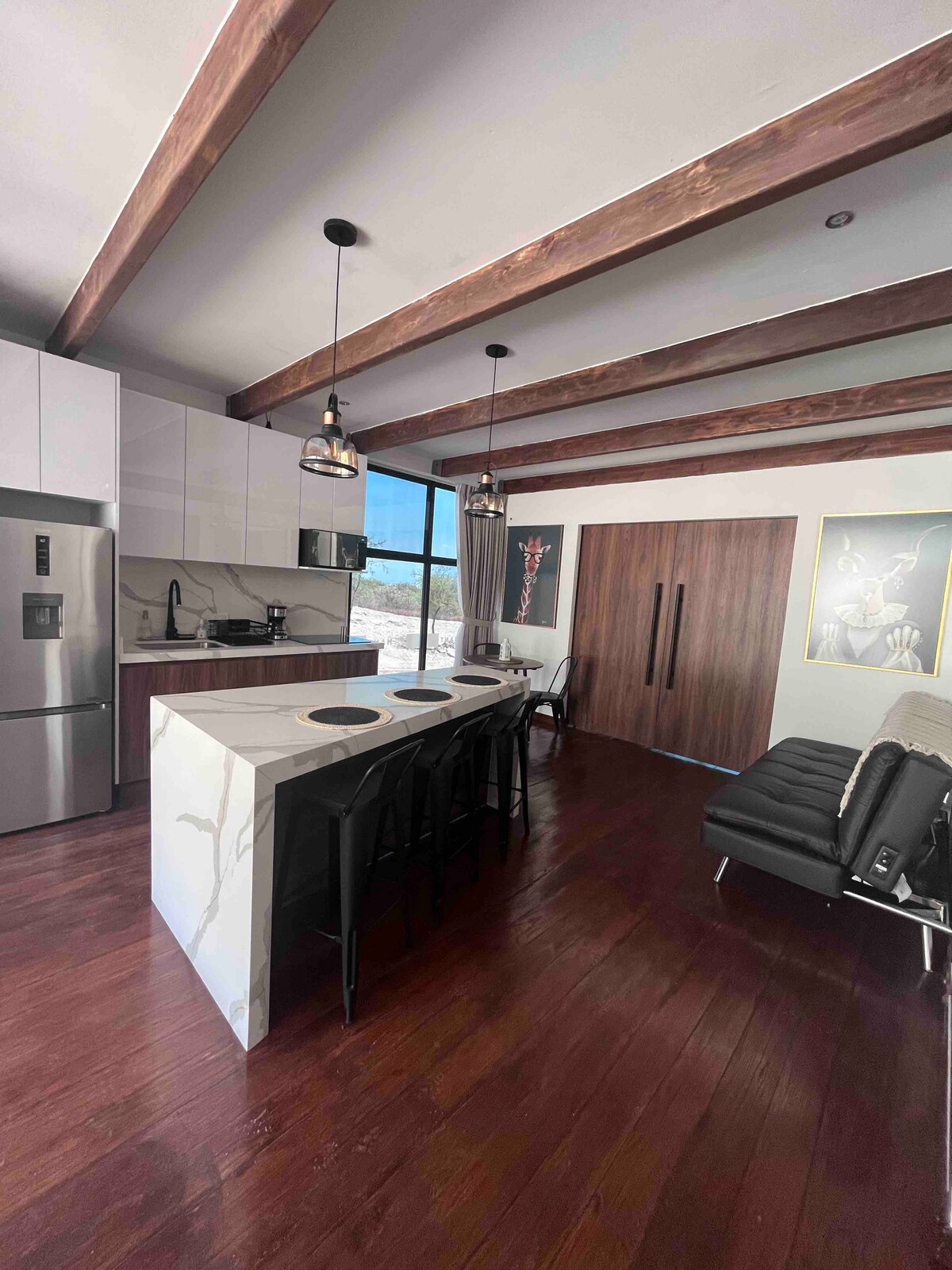 La migliore posizione e la vista a 360° su Monterrey! Attico completamente ristrutturato con finiture di lusso e sistema Alexa. 2 schermi da 65'' e 50" con Firestick (canali ed eventi). Situato in una zona di facile accesso e con sicurezza. Attico a 2 piani: Parte inferiore: cucina, sala da pranzo, area sociale con divano letto; tavolo in onice; camino, congelatore, bagno completo, TV e terrazza (poltrone) Parte superiore: camera da letto, letto matrimoniale, TV, minibar e scrivania Piscina, palestra e sala riunioni