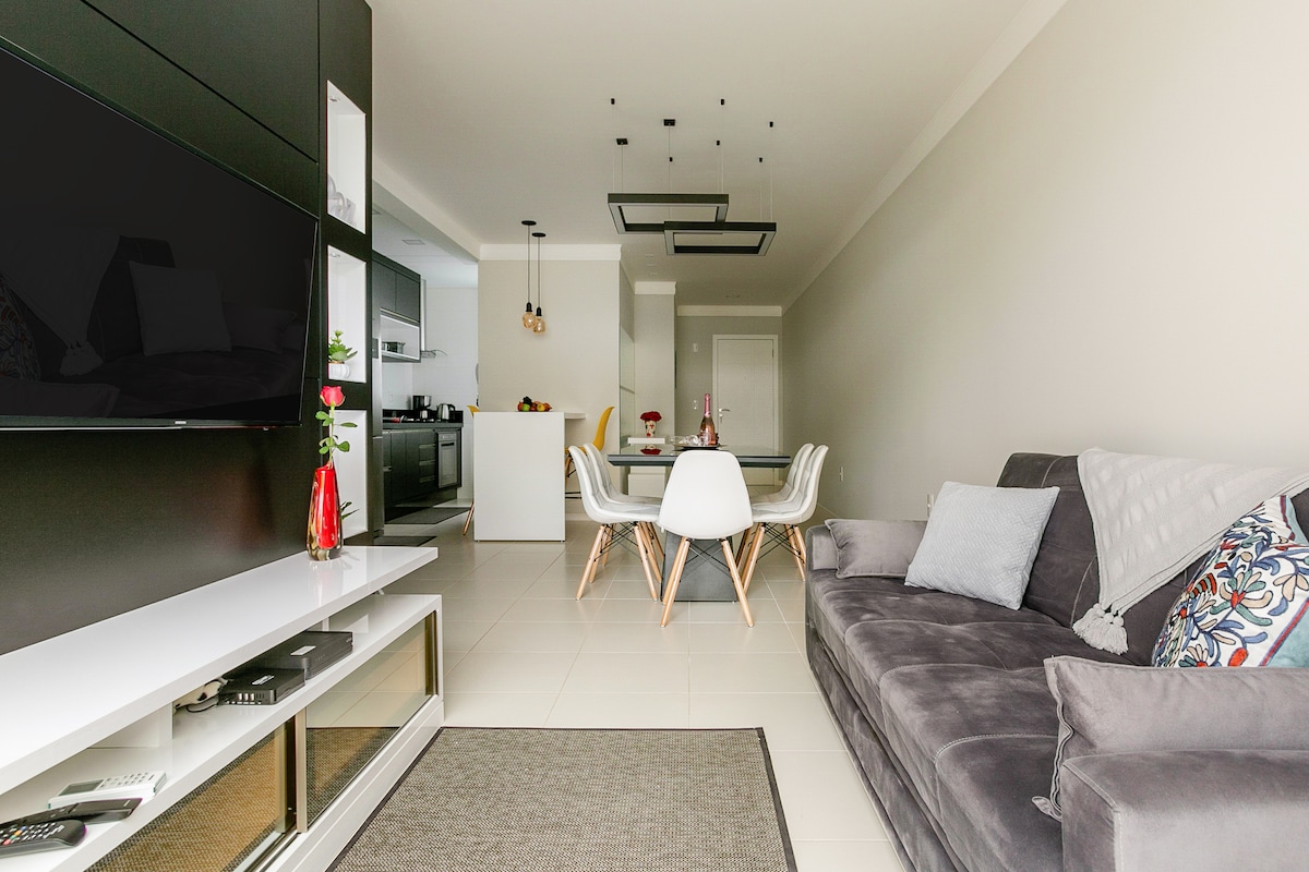 Venha curtir a Ilha da Magia em frente ao mar da Praia Brava. Apartamento recém reformado, aconchegante, bem equipado, dentro de um condomínio paradisíaco a poucos passos da areia de uma das praias mais lindas do Brasil. Apartamento espaçoso, com dois quartos (uma suíte), dois banheiros completos, churrasqueira, ar condicionado em todos os cômodos, máquina lava e seca, chuveiro a gás…enfim, todo conforto e tranquilidade para que você e sua família tenham momentos inesquecíveis em Florianópolis.
