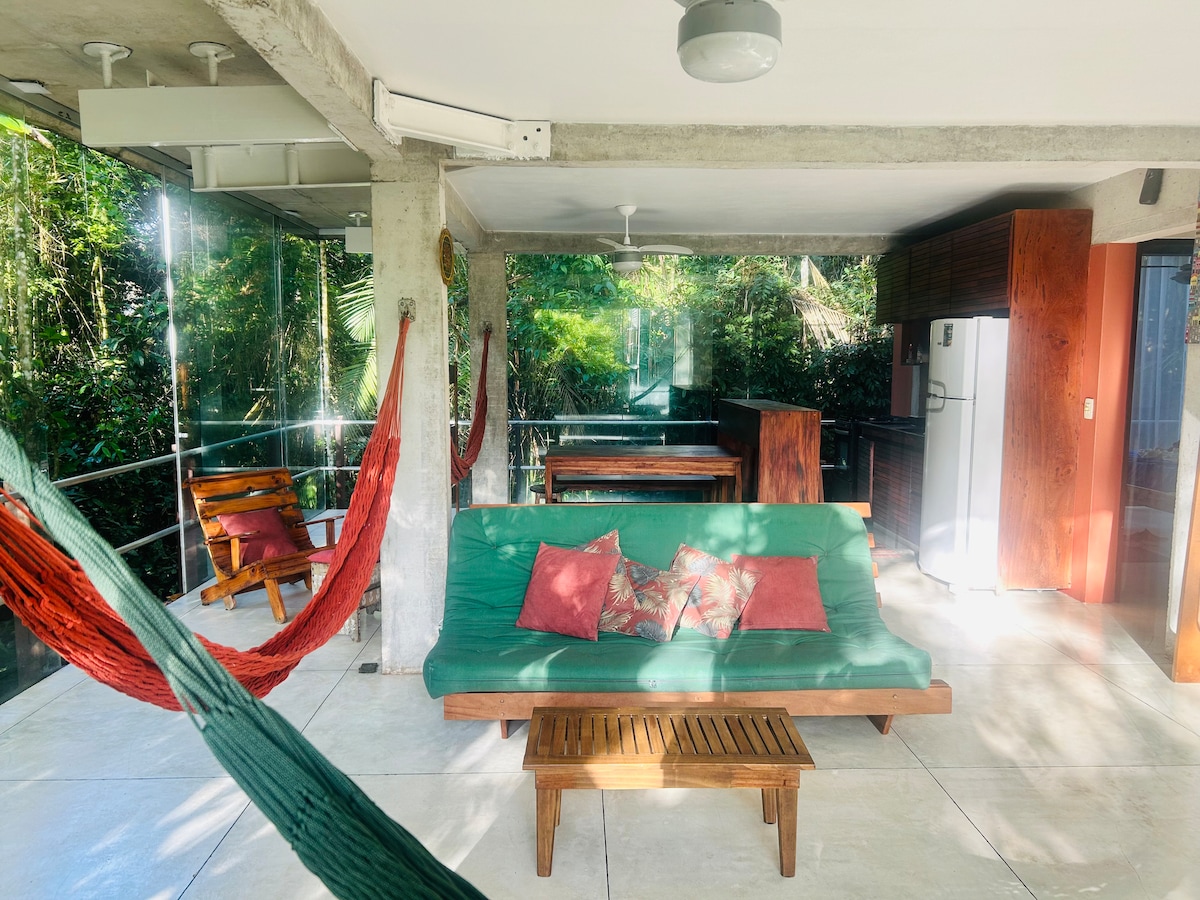 Incredibilmente affascinante, la nostra Casinha si trova all'interno della Foresta Atlantica. Da qui possiamo osservare uccelli di tutte le specie, tucani e scoiattoli sono uno spettacolo a sé. La casa è in cima alla foresta di Itamambuca ed è sempre fresca. Abbiamo l'aria condizionata. L'acqua proviene direttamente dalla foresta ed è ottima per bere e fare il bagno. La Casinha è completamente recintata e il tuo animale domestico può essere lasciato libero in tutta sicurezza. Organizziamo percorsi, lezioni di surf e sessioni nelle migliori condizioni.