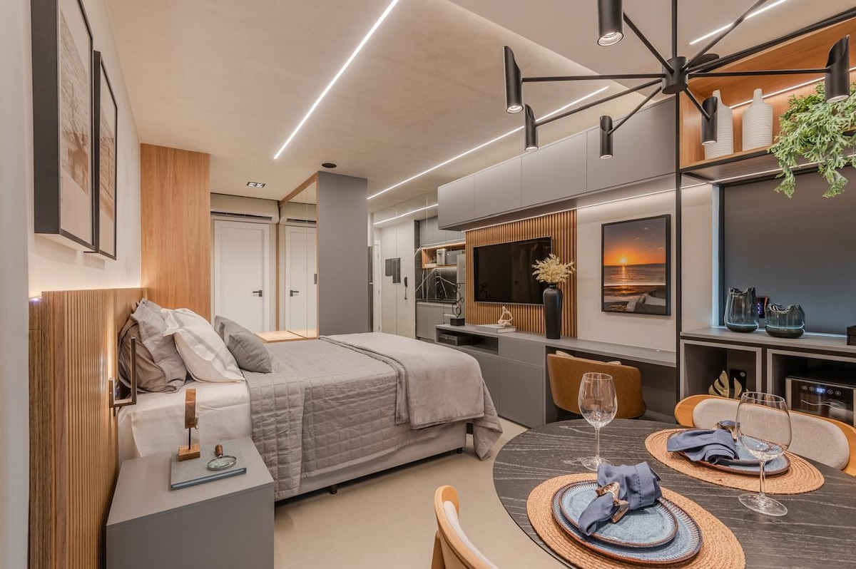 Goditi un monolocale moderno, accogliente e splendidamente decorato, situato proprio di fronte alla spiaggia di Armação. Lo spazio dispone di un letto matrimoniale, un divano letto, una cucina completamente attrezzata, Wi-Fi veloce e tutto il necessario per farti sentire a casa. L'edificio è nuovo, sicuro e pieno di fascino, con un'architettura contemporanea, spazi ben progettati e un'atmosfera artistica che fa un'ottima prima impressione. Ideale per coppie, amici o per chi viaggia per lavoro. Vieni a vivere Salvador con comfort e comodità.
