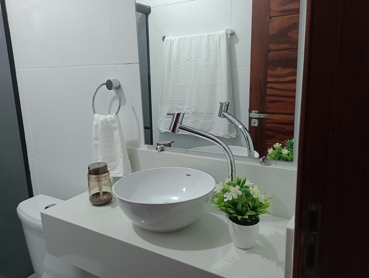 A casa oferece tudo o que você precisa para uma estadia confortável. Localiza-se à 2,5 km da praia. É ideal para famílias, casais, viagens a trabalho e turistas que desejam conhecer a cidade. O imóvel dispõe de: -Uma piscina privativa; -Área de jogos com mesa de sinuca e de jogos; -Área gourmet com churrasqueira; -Garagem para 2 carros; -3 suítes com ventilador de teto (2 suítes com ar-condicionado); -Chuveiro elétrico em todos os banheiros; -Cozinha completa
