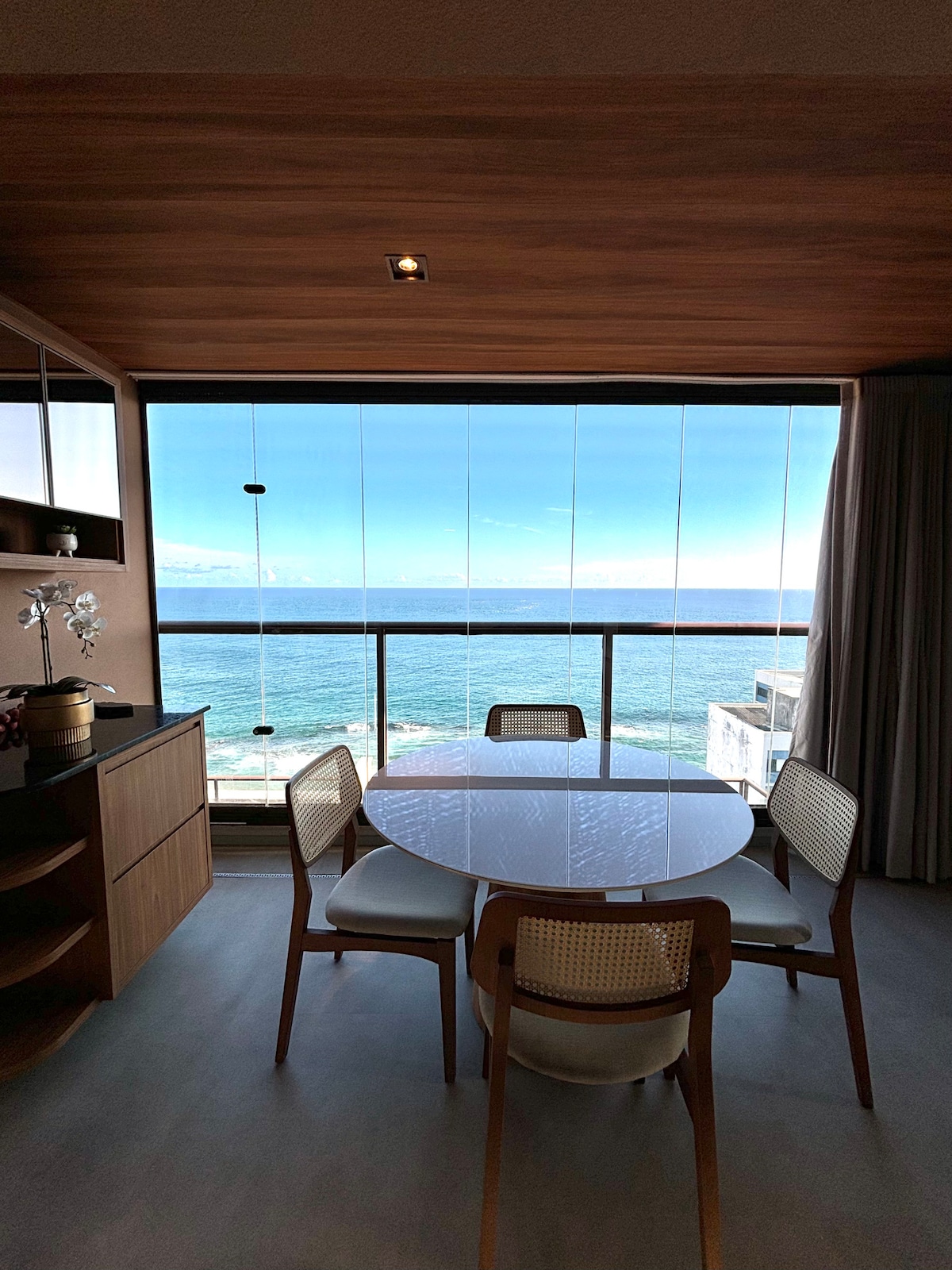 An apartment on the seafront of Barra beach, just a few minutes from the Lighthouse and close to the city's main tourist attractions. Full of style and with refined decoration, the apartment has a private terrace fully integrated into the living room, with a garden, sun deck and shower for sunny days. Inside a new and well-equipped building, it is very close to an excellent network of services, and offers a privileged view of the Carnival circuit. Ideal for couples or groups of up to 4 people.