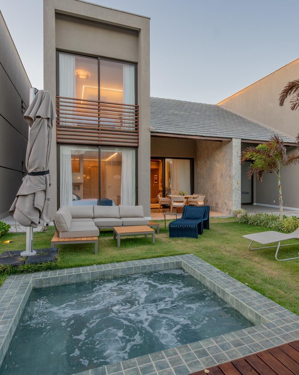 Ti ricordi "Mamma Mia!" e "Prima di mezzanotte" con case imbiancate dall'aspetto quadrato, con un tetto blu brillante, porte e finestre in riva al mare? Beh, questa è una casa con architettura greca sulla costa brasiliana. Uno spazio accogliente con 4 suite con letto super king, cucina, soggiorno, aria condizionata, arredato. Ci sono 3 suite con 18 m2 e 1 suite con 27 m2, con una vasca panoramica e un piacevole balcone, tutte a 1 minuto dalla sabbia della spiaggia, in un paradiso chiamato Flecheiras.
