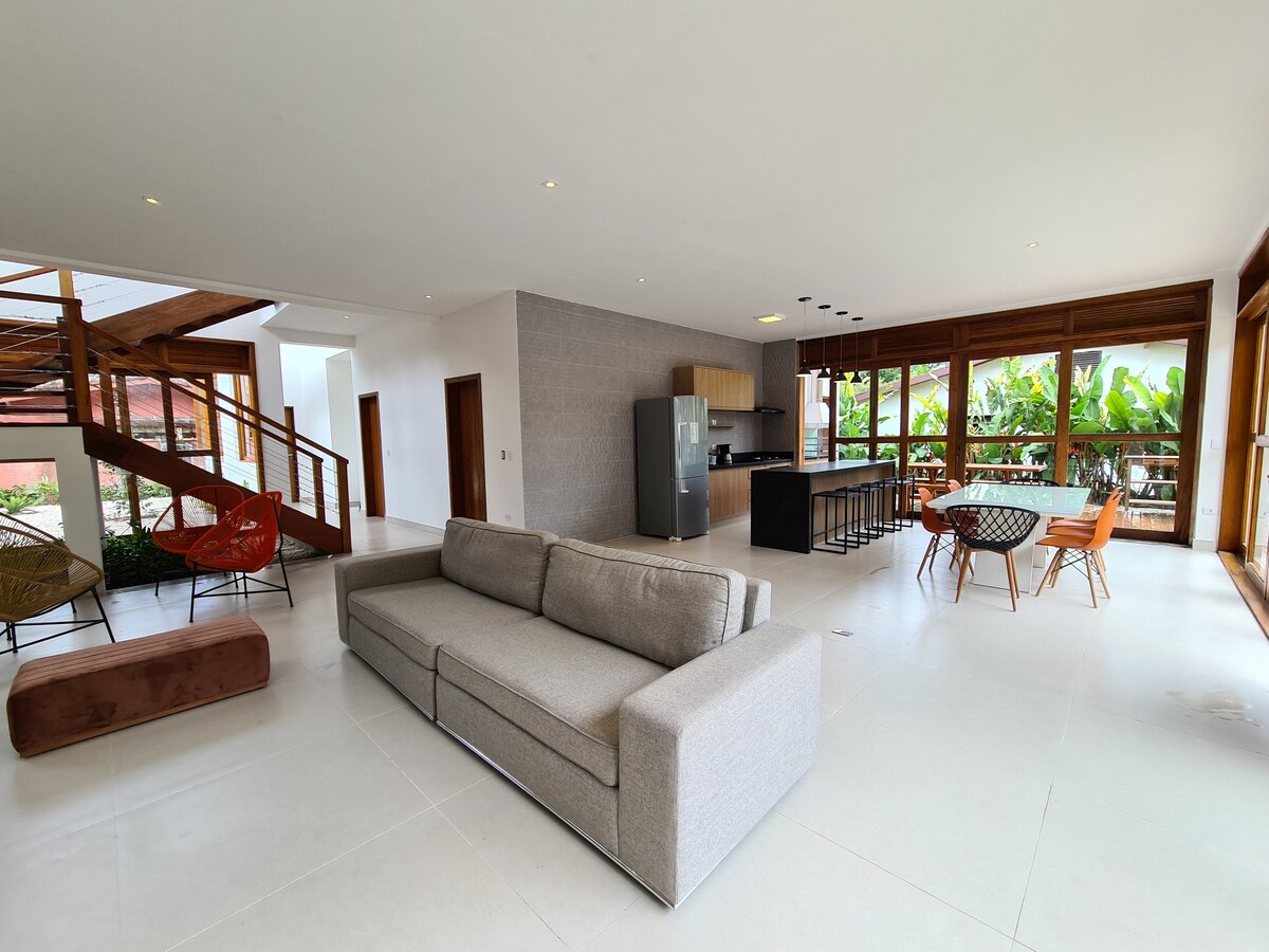 Una casa super moderna è stata appena messa a disposizione a Itamambuca, nella parte più lussuosa della spiaggia. Gli ospiti che prenotano saranno i primi inquilini, con mobili nuovi al 100% e di prim'ordine, arredi da copertina di riviste e tanto comfort! Si trova a soli 5 minuti a piedi dalla spiaggia, già sulla strada di accesso. Comprende: - 4 camere da letto (tutte suite) - 1 toilette - Wifi con fibra da 100 MB - Ampio soggiorno con Smart TV 4K e canali via cavo - Terrazza sul tetto - Balcone gourmet con barbecue - Cucina attrezzata
