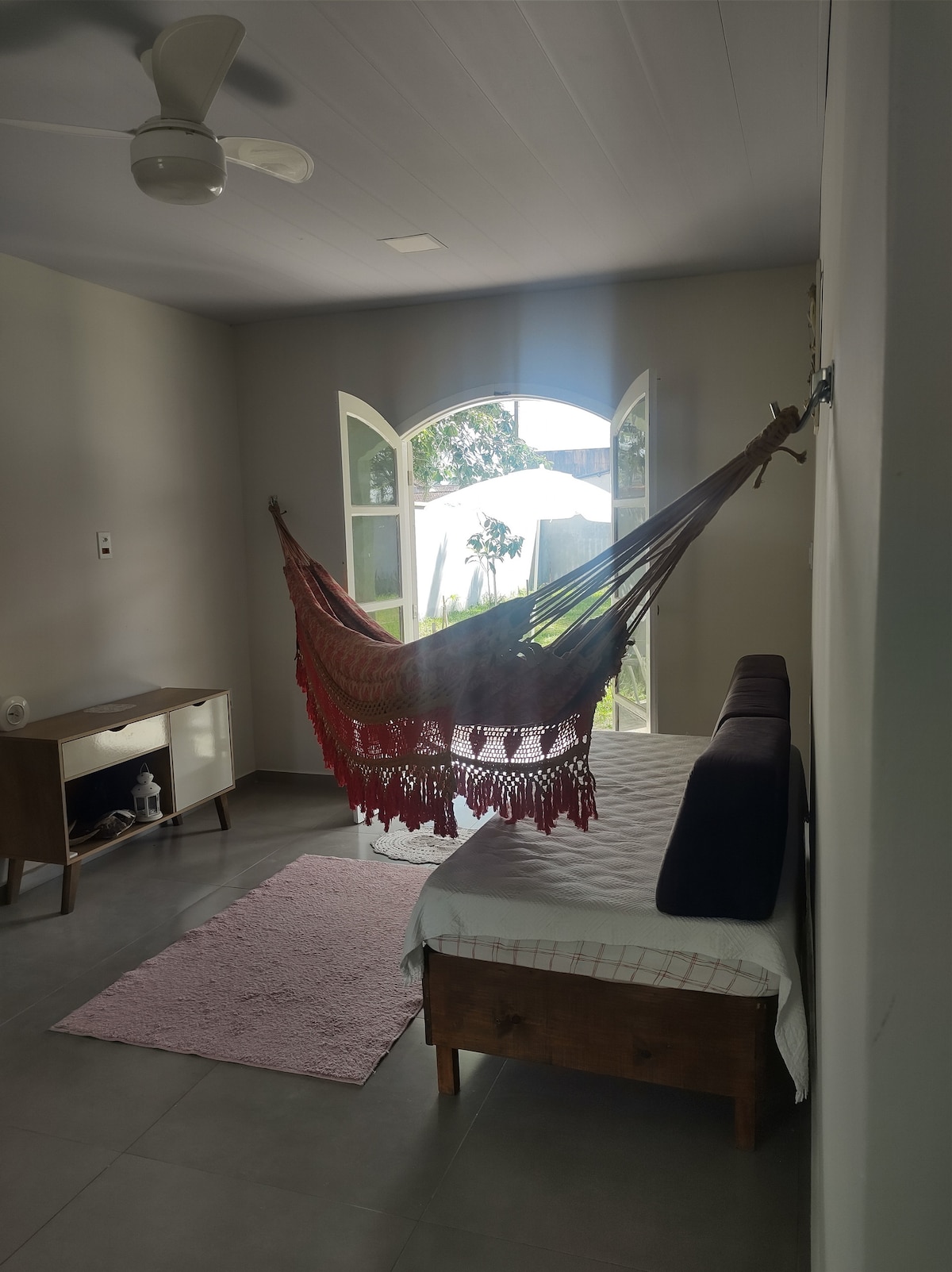 Fica a 1 quadra da praia. Com sala/cozinha (bicama) + 1 quarto (suíte, cama de casal), tem todo conforto para o hóspede economizar $ e cozinhar no local (fogão, geladeira e utensílios domésticos, churrasqueira e lavanderia externa). Acomoda até 4 pessoas. Fica nos fundos da minha casa, possui portão divisorio entre as casas. É permitido pets, desde que dóceis. O carro deve ficar estacionado paralelo à rua (vizinhança tranquila). Avisar sobre checkin após as 21h, pois serão avaliados .