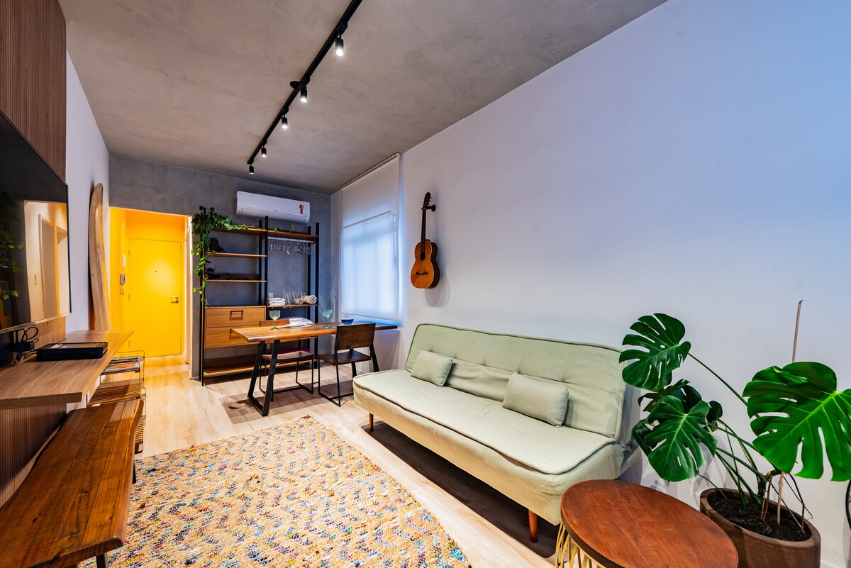 This 55m² apartment is ideal for couples and executives on business trips. It has everything you'd expect from an apartment: practicality and technology. For those coming to spend New Year's Eve in Santos, you can enjoy the festivities without even leaving the building. From the pool area, you can enjoy the sea view, the fireworks, and the city's festive atmosphere without having to deal with traffic, crowds, or a tiring commute after the fireworks.