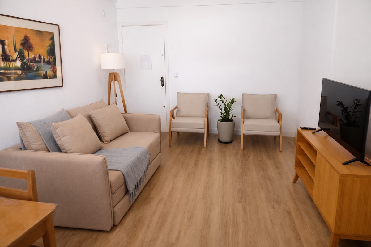 Contattaci e chiedi informazioni sulle condizioni speciali prima di effettuare la prenotazione! Appartamento a 50 metri da Praia do Forte, recentemente ristrutturato. È molto pulito e arioso. C'è odore di pulito! Bagni puliti e letti comodi. Wi-Fi in tutta la casa e Smart TV in soggiorno. La cucina è completa, con frigorifero, forno, piano cottura, forno a microonde e utensili. Lavatrice con centrifuga. Un posto auto e ascensore.