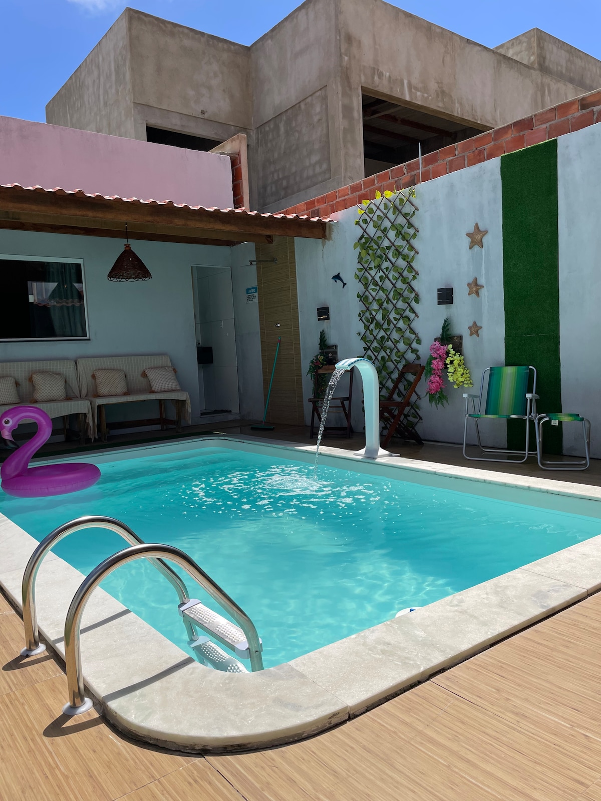 gestito da larmaralagoas -casa per 10 persone. + con materasso -3 camere con aria condizionata di cui 2 suite. 4 bagni -Portineria e sorveglianza 24 ore su 24. wi-fi. -Il condominio dispone di un'enorme area ricreativa, campo polisportivo, beach tennis, parco giochi, barbecue, una grande piscina per bambini e adulti. -la casa dispone di piscina e barbecue privato. -migliore posizione. 5 minuti di auto per la spiaggia del francese, 10 minuti per Barra de São Miguel e 15 minuti per la spiaggia di Gunga. 15 minuti da Maceió.
