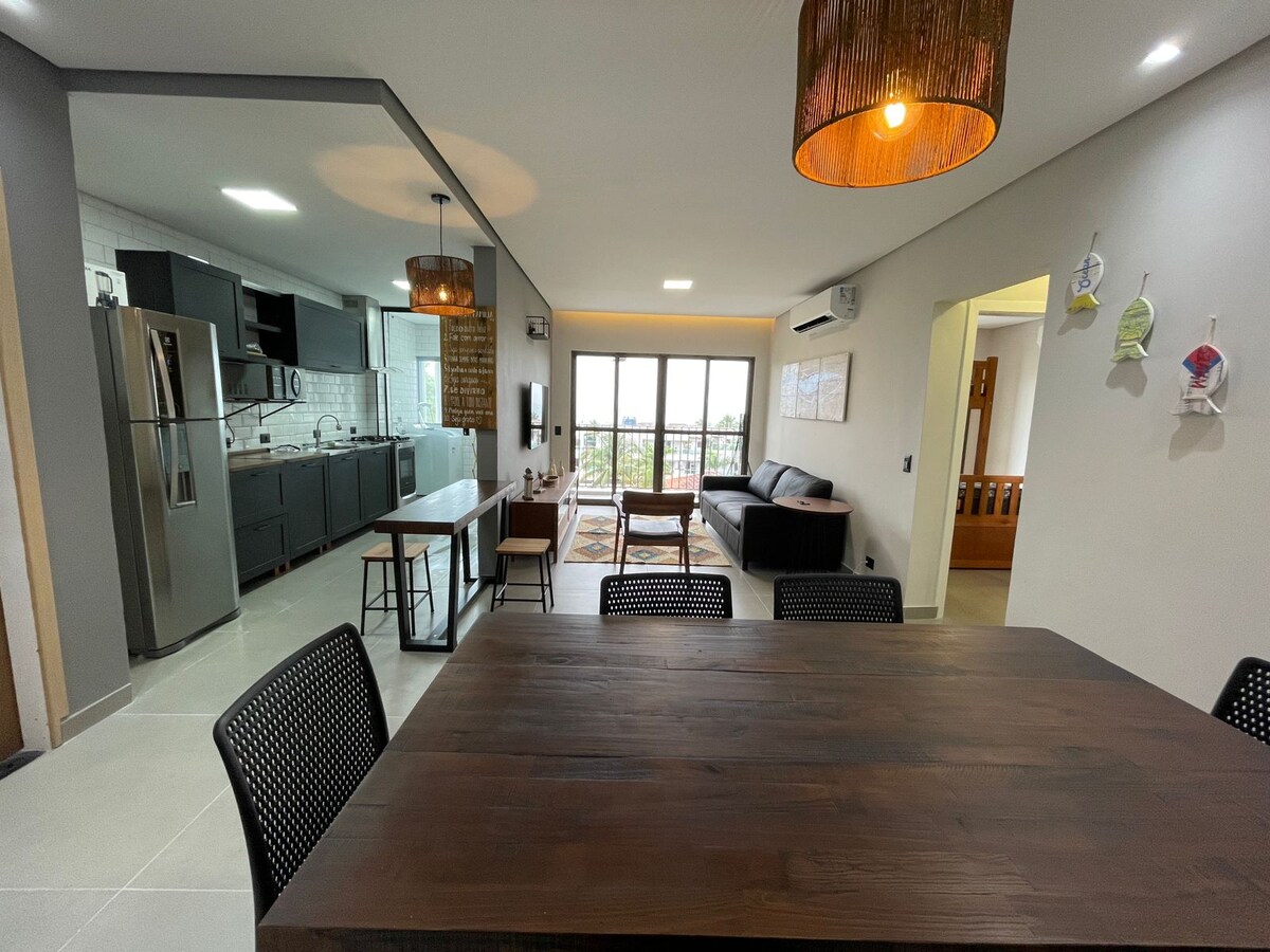 Sentiti come in una nave, a solo 1 ora dalla città di San Paolo: suoni di onde, uccelli e un paesaggio spettacolare con vista sul mare e tartarughe marine. Situato in un appartamento sofisticato con una natura esuberante, nella migliore spiaggia di Guarujá. L'appartamento dispone di un grande balcone per il soggiorno e le camere da letto, ed è pronto ad offrire un'esperienza unica sia per rilassarsi e/o lavorare: wi-fi ad alta velocità, aria condizionata, smartTV e home office. Piscine vista mare, palestra, barbecue. Servizio spiaggia.