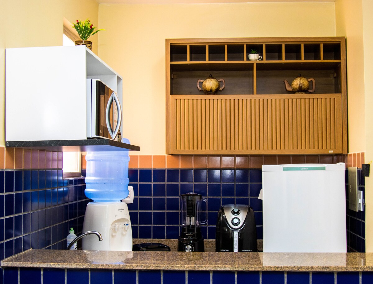 "Brezza e mare: il tuo appartamento a Porto Seguro" Benvenuti nella migliore unità dell'Apart Hotel Boulevard da Praia, di fronte alla spiaggia di Taperapuã, una delle migliori spiagge di Porto Seguro. Un appartamento appena ristrutturato, accogliente e ben attrezzato con i servizi offerti da un hotel, come colazione e servizio di pulizia, tutto incluso nella tariffa giornaliera. *IMPORTANTE* A LUGLIO, ci sarà un disturbo delle ore di silenzio OGNI notte fino all'alba (vedi le Regole della casa).