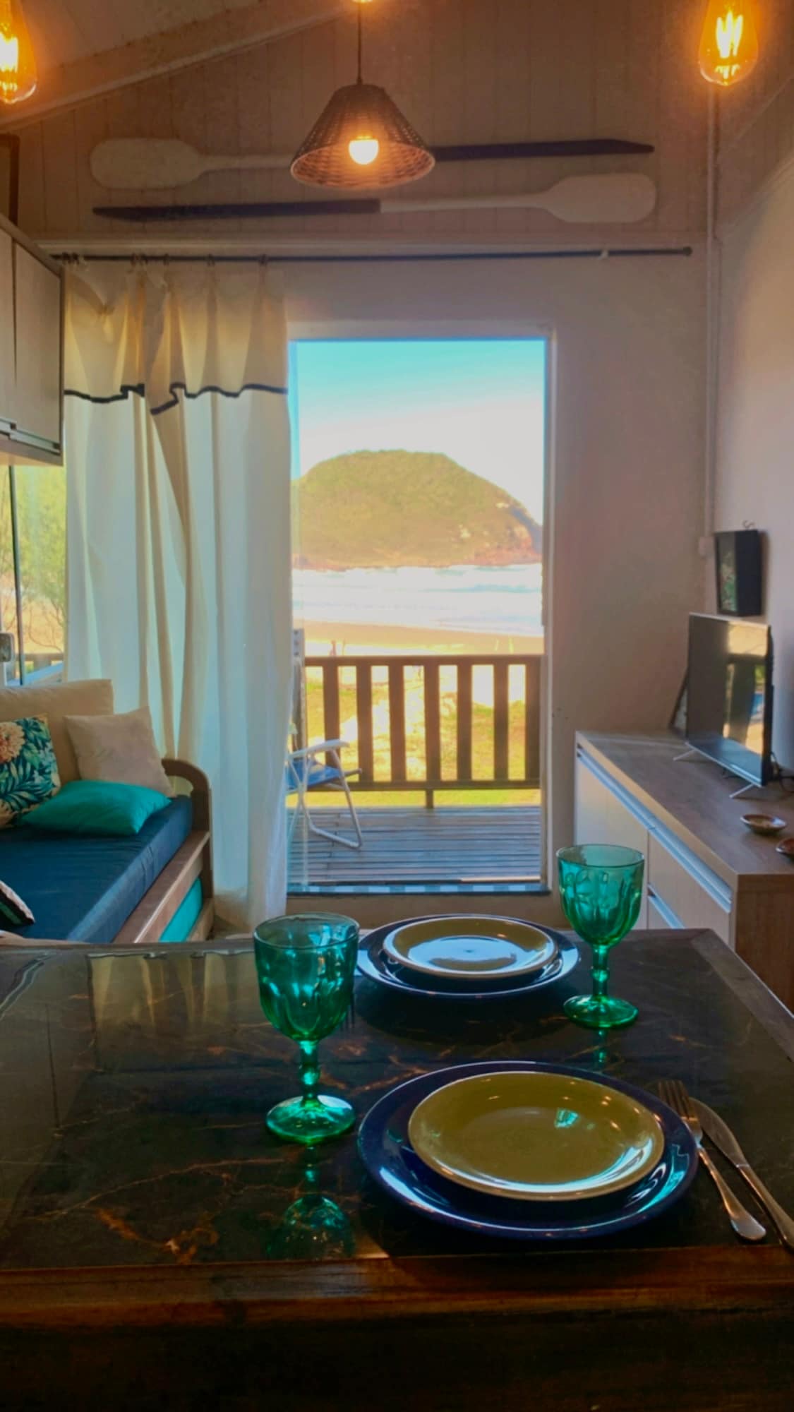 Vila Avalon is the top-floor apartment of the villa, featuring a spacious balcony with a breathtaking panoramic view of Vale do Rosa, Ibiraquera Lagoon, and the ocean 🌅✨. The access includes 600 meters of unpaved road, though flat. Perfect for couples looking to escape the hustle and bustle of the city, this space offers tranquility surrounded by lush nature 🌿💙. The apartment includes a fully equipped kitchen and an outdoor heated jacuzzi, ideal for relaxing moments under the starry sky 💫🛁.