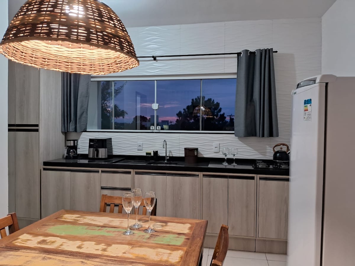 Abrace a simplicidade neste lugar tranquilo e bem-localizado. estamos apenas 700 metros da Praia do Rosa, canto norte, cerca de 15 minutos caminhando e 300 metros do centrinho, onde se encontra os melhores restaurantes e comodidades da região. nosso espaço dispõe, 2 quartos, ar-condicionado, sala cozinha integradas, churrasqueira, sacada e vista para as montanhas. oferecemos sem custo extra roupa de cama e banho que são trocadas conforme necessário. contamos com uma linda piscina com vista.