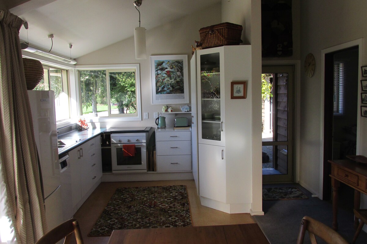 La nostra casa dispone di una dependance indipendente situata in un blocco di 4 ettari, che offre una posizione tranquilla e silenziosa. Dispone di un comodo letto matrimoniale con bagno privato separato, cucina e salotto. Possiamo ospitare un adulto/bambino in più (divano letto matrimoniale o materasso singolo) e abbiamo tutto il necessario per neonati e bambini piccoli. Tè, caffè, latte e pane tostato sono gratuiti. Ci troviamo a 12 minuti dal centro di Christchurch, vicino a Prebbleton e a 15 minuti dall'aeroporto.