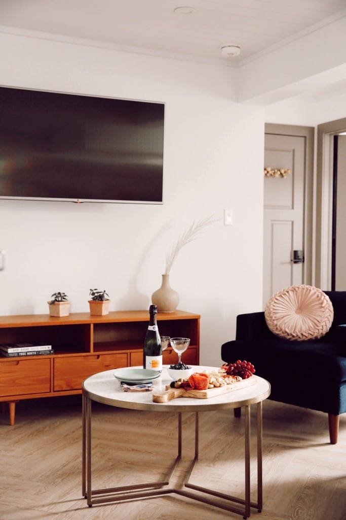Ti diamo il benvenuto al Fancie's PEC, un boutique hotel situato direttamente sulla baia di Quinte, nella contea di Prince Edward. Per saperne di più sulla nostra offerta, cerca la PEC di Fancie online. Questa è la nostra suite più grande (dotata di un salotto dedicato) ed è il luogo perfetto per riunire gli amici nella contea di Prince Edward. Durante il tuo soggiorno, ammira la splendida vista sulla baia di Quinte, goditi gli spettacolari tramonti e accedi ai nostri servizi per gli ospiti come la cucina, il soggiorno e la sala da pranzo!