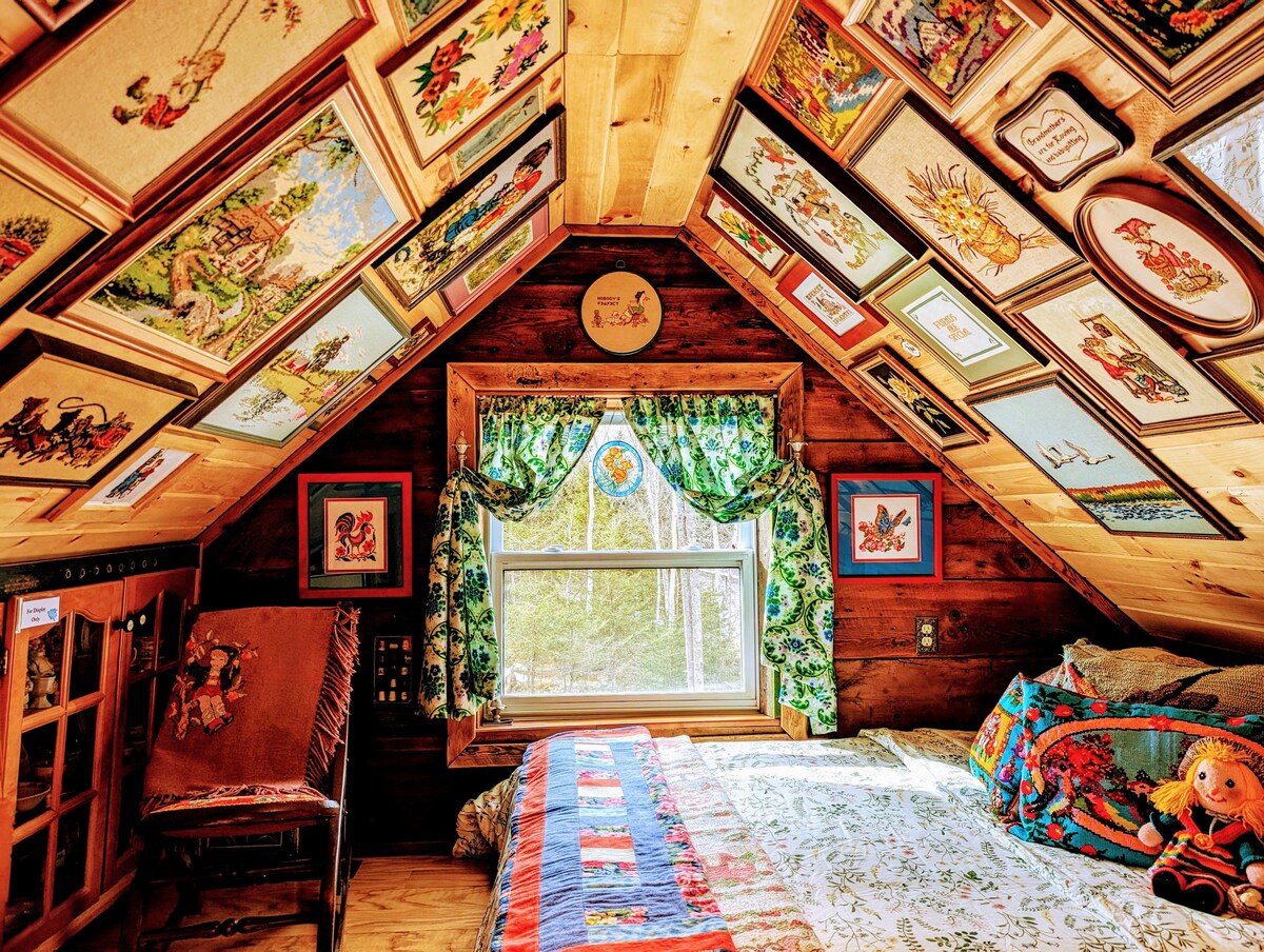 Ispirato da Mamma Oca o dalle figure a cui si tiene. Un luogo dove riposarsi dopo un lungo viaggio da favola. Un luogo per ricordare e custodire i ricordi e i tesori che ha collezionato lungo il percorso. Un chalet e uno spazio che abbraccia sia la creatività che il comfort. Pieno di oggetti d'antiquariato e mobili ristrutturati, pianoforti e organi. Questo è il terzo chalet che abbiamo installato sulla nostra proprietà di quattro acri. C'è un'esclusiva vasca idromassaggio per 6 persone sulla veranda, e la sauna è a pochi passi di distanza.