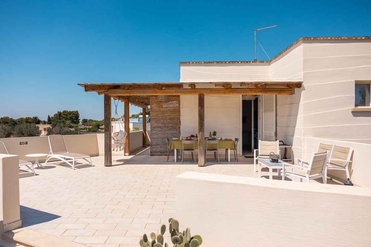 Varca il bianco portone ed entra in un luogo incantevole dove il tempo sembra essersi fermato, una dimora di ampie dimensioni che ha mantenuto le caratteristiche originali dell'epoca, con un’ampia terrazza che invita alla convivialità in cui assaporare l'autentica anima salentina.