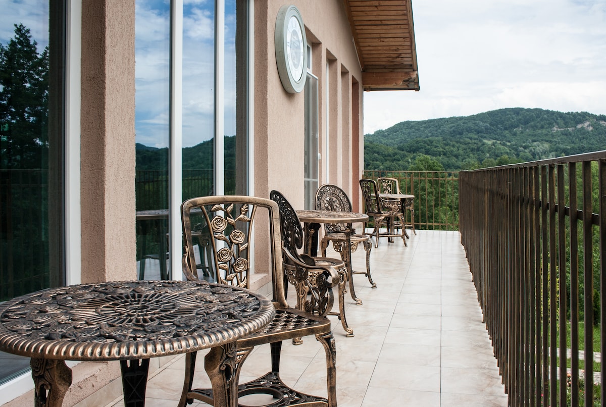 Ti invitiamo a soggiornare nella nostra villa privata per le vacanze, situata ad appena un'ora e mezza dal centro di Bucarest, a 20 minuti di auto dalla città di Campina. Godendo di due viste panoramiche spettacolari, la villa si trova sulla sommità della collina, con doppie aperture di terreno. Due aree barbecue, ampie e accoglienti terrazze, panorami mozzafiato, percorsi e passeggiate rilassanti attraverso foreste vergini e dintorni, è il luogo perfetto per ricaricare le batterie.