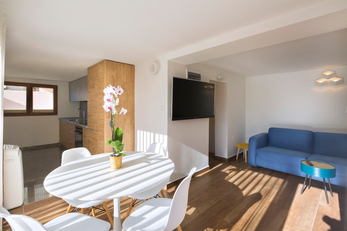 Questo appartamento include: 1 camera da letto, 1 bagno, cucina con zona pranzo e divano che si apre in un terzo letto, terrazza con vista mare. Siamo a soli 100 metri da un negozio di alimentari, dalla fermata dell'autobus e da un ristorante/bar. Inoltre, siamo a 500 metri dalla spiaggia. **Nota: la tassa di soggiorno non è inclusa nei nostri prezzi**