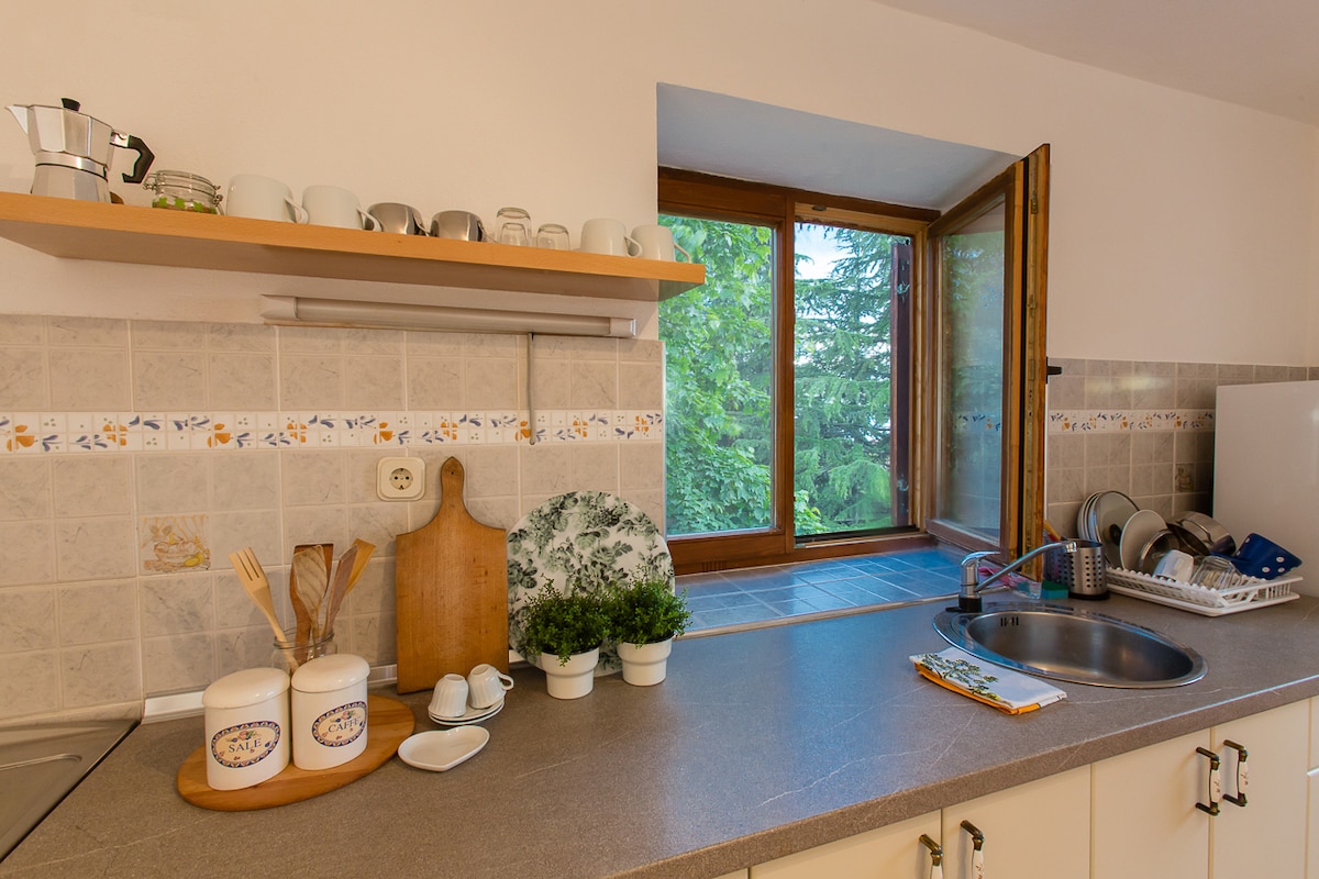 STACCA LA SPINA, per RICARICARTI Lascia che il canto del gallo ti svegli dolcemente all'alba, ondeggia al suono delicato delle campane mentre le pecore tornano dal pascolo e, con un po' di fortuna, ammira gli scoiattoli giocosi che sfrecciano con grazia tra gli imponenti pini del nostro giardino! Ascolta il suono della natura selvaggia, i colori del vento, lasciati incantare dal profumo di innumerevoli fiori di montagna, goditi i tramonti color vaniglia e ascolta le stelle di notte! Incontra il tuo spirito!