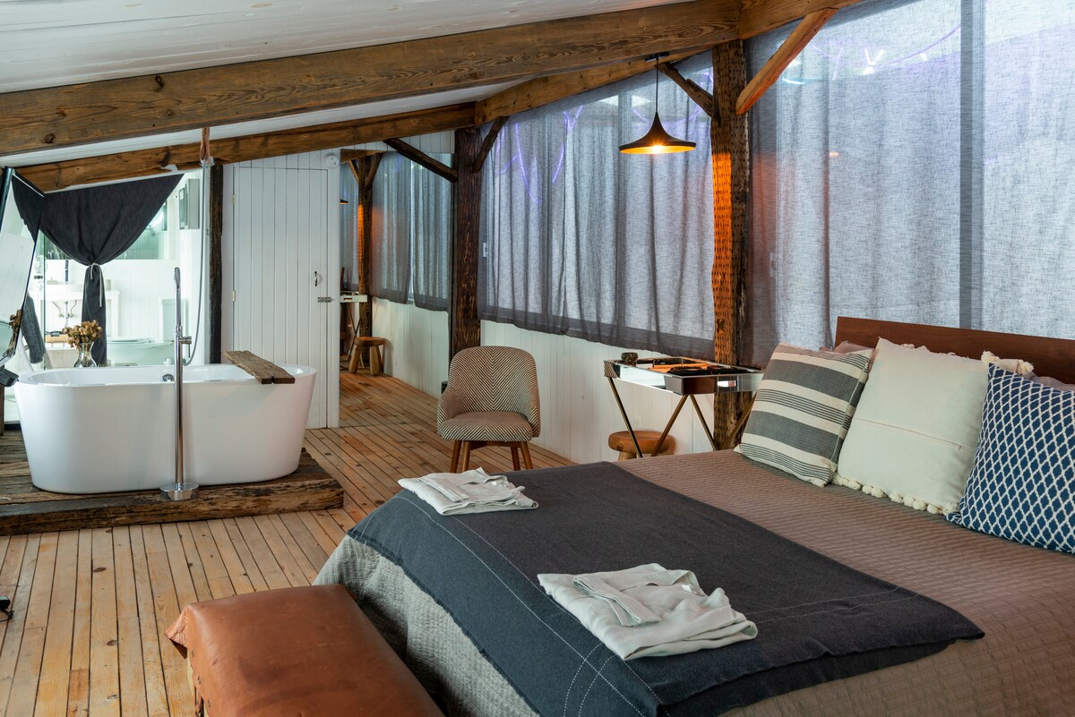 Nuestro hermoso loft cuenta con un concepto único de ventanas libres de tela para que admires el paisaje campirano. Decoración estilo ecléctico que conjuga perfectamente antigüedades, muebles modernos y arte que harán tu estancia muy especial.