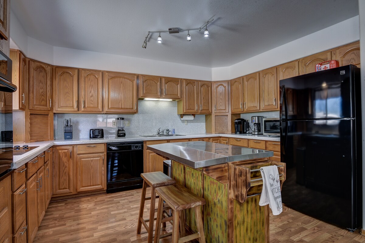 Questa bellissima casa di oltre 278 metri quadri offre tutto lo spazio, i comfort e gli elementi essenziali di cui hai bisogno per una perfetta vacanza o fuga in famiglia: 5 camere da letto, 3 bagni, una cucina a vista con una grande sala da pranzo, aria condizionata, connessione Wi-Fi ad alta velocità, Netflix, Smart TV ROKU in ogni stanza, una sala comune con calcio balilla, una palestra domestica, una lavanderia, una vista mozzafiato sulle montagne dal ponte di osservazione di recente costruzione, un cortile recintato erboso, un fantastico patio sul retro con due tavoli, una vasca idromassaggio rilassante, un braciere a gas e un barbecue!