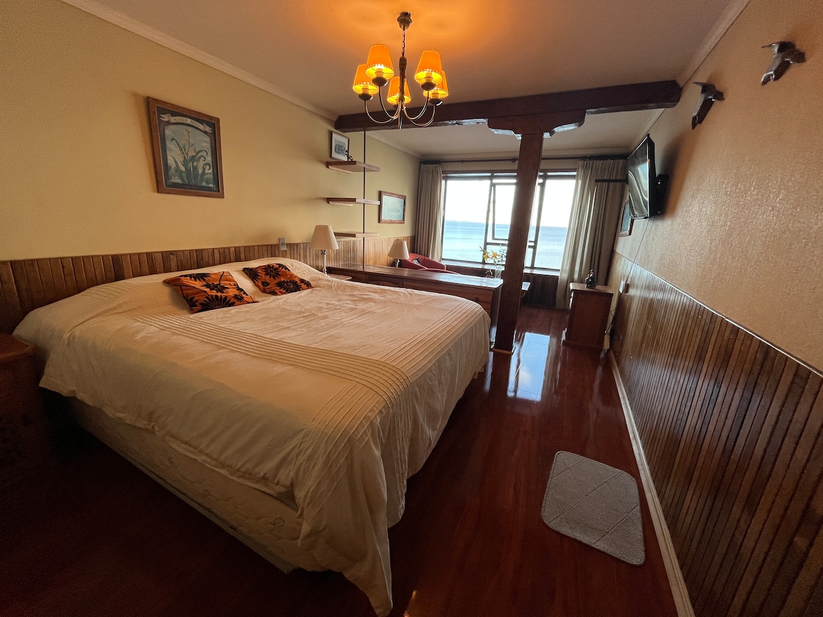 Departamento full equipado para 4 personas, ubicado en edificio nuevo, frente al Lago Llanquihue y a pasos de distintos restaurantes. El departamento incluye todo lo necesario para una grata estadía, considerando 1 cama tamaño King y 2 camas individuales (cama nido). El departamento cuenta con estacionamiento privado, ubicado en el subterráneo del mismo edificio. El edificio cuenta con lavandería, jardín privado y una amplia piscina temperada, disponible para los huéspedes del departamento.