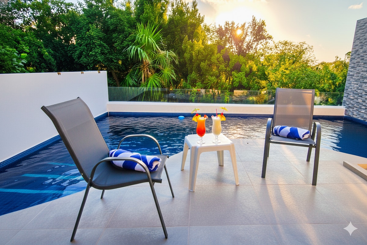 Enjoy a piece of paradise : 120m2 of privacy and relaxation with a beautiful private pool (just for you). A modern, spacious and accommodating full apartment 1 minute from the Caribbean beach, inside the luxury residence of Playacar Fase 1. *King-sized bed *Wi-fi ( good speed to work ) *Full Kitchen *10 min walk from the famous 5th avenue *1 min walk from the beach *Security guard 24/24
