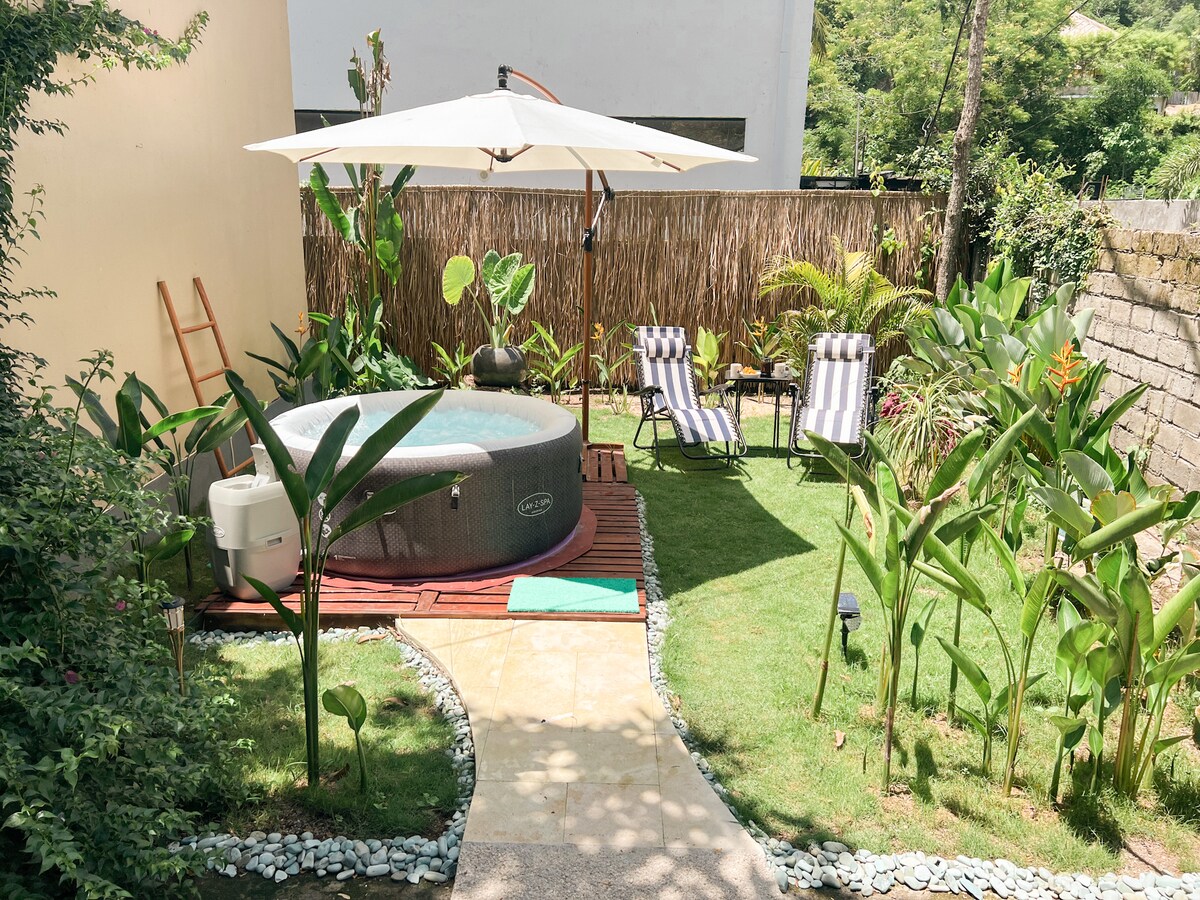Une Tiny House avec mezzanine, équipée d'un lit king-size, d'un salon privé avec climatisation, d'une salle de bain avec eau chaude, d'une cuisine extérieure et d'un jardin privé. Le tout situé à proximité des restaurants et à quelques minutes du centre-ville, dans une rue calme. De plus vous beneficier de L'entrée gratuite a la salle de gym Xeno fit tout le long de votre sejour, situee a 3mn de scooter