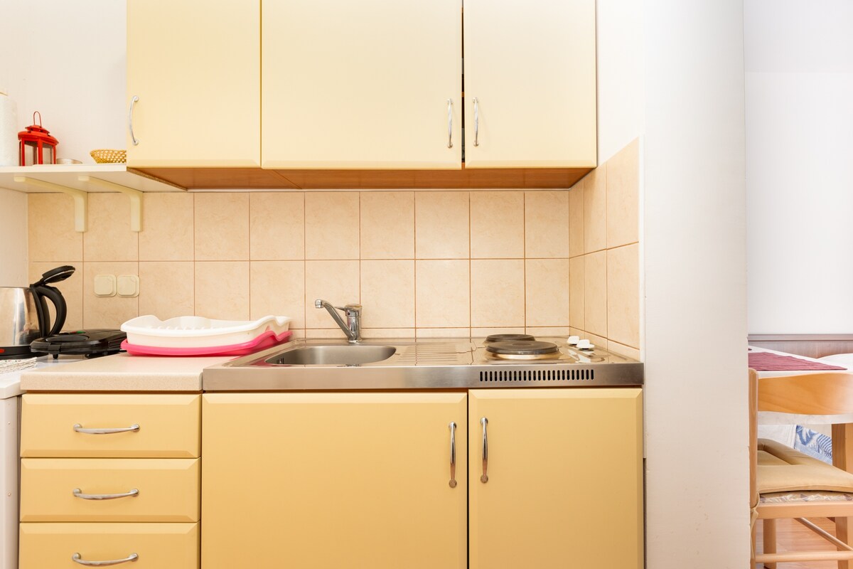Bellissimo e moderno appartamento con una camera da letto, completamente ristrutturato! Situato in un'ottima posizione centrale di Punat, in una bella zona tranquilla ma comunque vicino al centro del paese e alle famose spiagge di Punat. L'appartamento Zardin è composto da una cucina molto ben attrezzata con zona pranzo e soggiorno, camera matrimoniale, bagno e un grazioso balcone con tavolo e sedie, perfetto per i pasti estivi all'aria aperta! Parcheggio all'interno della proprietà, wifi e aria condizionata inclusi!