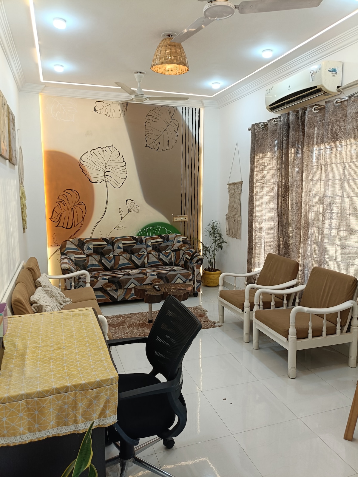 Boho by Great Impressions | Viman Nagar Enjoy a stylish stay in this top-floor 1BHK on Airport Road. The Space: A spacious boho-chic living room and a private patio with great views. Amenities: Fully equipped kitchen with utensils and high-speed Jio Fiber Wi-Fi. Location: Prime Viman Nagar location, surrounded by the city's best cafes and shops. Top-floor privacy. Designer vibes. Book your stay today!