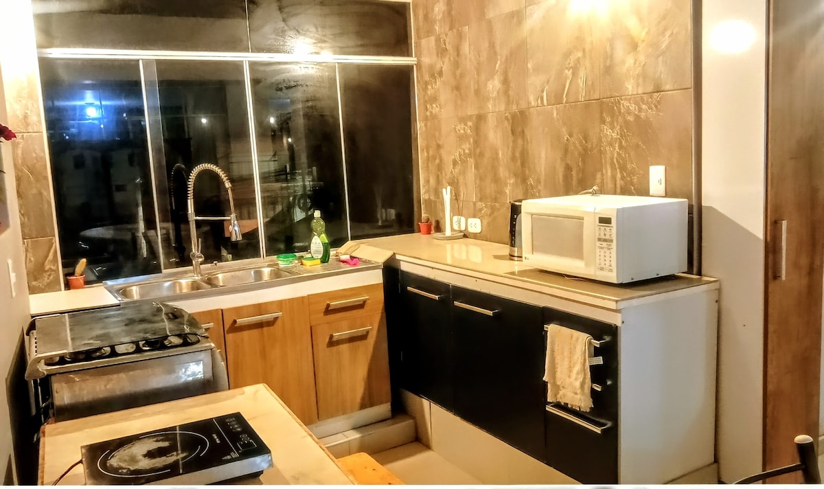Appartamento con due camere da letto, soggiorno, sala da pranzo e cucina attrezzata con tutto il necessario per preparare e cucinare. Molto confortevole, spazioso e tranquillo. Abbiamo un garage in loco. Disponiamo di wifi e TV via cavo. Si trova vicino al mercato Laykakota, ai parchi, ai ristoranti, ai terminal e alle farmacie. La zona è tranquilla, passano molte compagnie di trasporto urbano, taxi e mototaxi. Disconnettiti dalle tue preoccupazioni in questo spazio ampio e sereno.