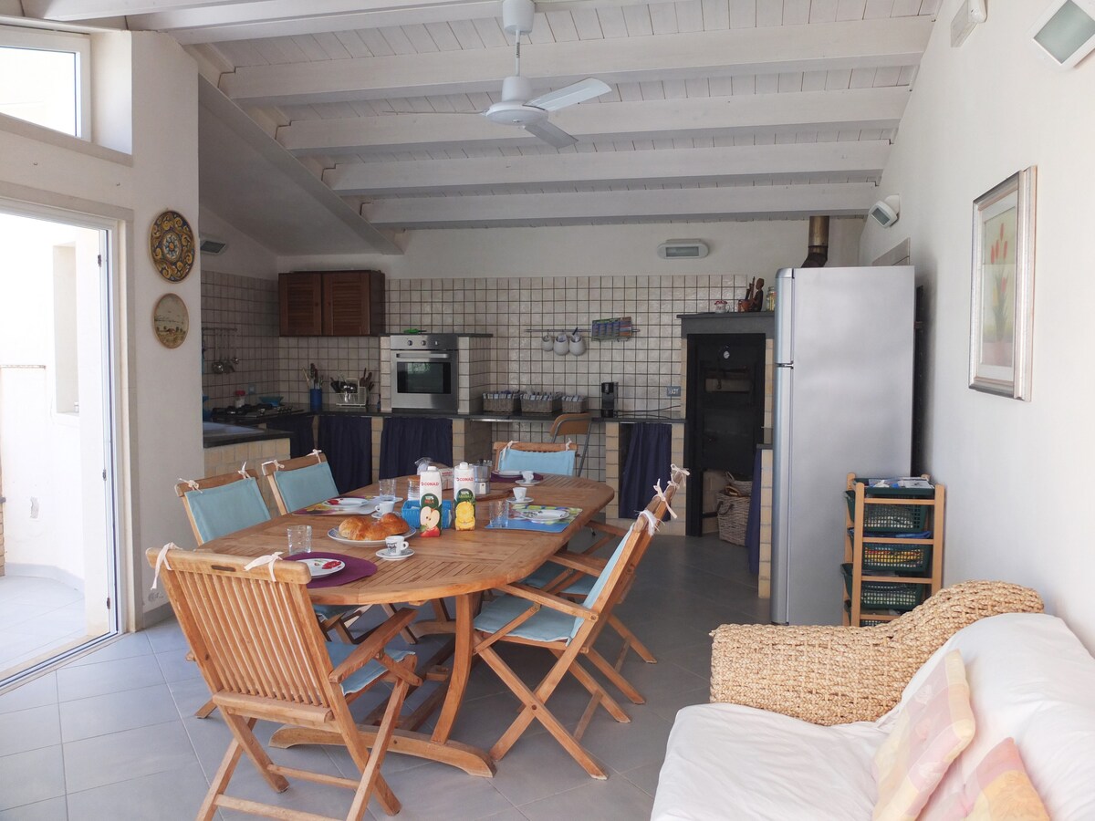 Goditi una vacanza all'insegna dello stile, della comodità e del relax in questa casa in centro appena ristrutturata. Spaziosa, pulita,nuova e luminosa. Tre grandi camere di cui 2 matrimoniali e 1 singola. 2 bagni completi, box doccia doppia, soggiorno e cucina accessoriata di tutto Aria condizionata ovunque.Splendido terrazzo perimetrale attrezzato di sdraio, tavolo, barbecue weber, vista mare,vista faro a 50 metri dalla spiaggia di Montalbano Posti auto gratuiti sempre tranne Luglio-Settembre